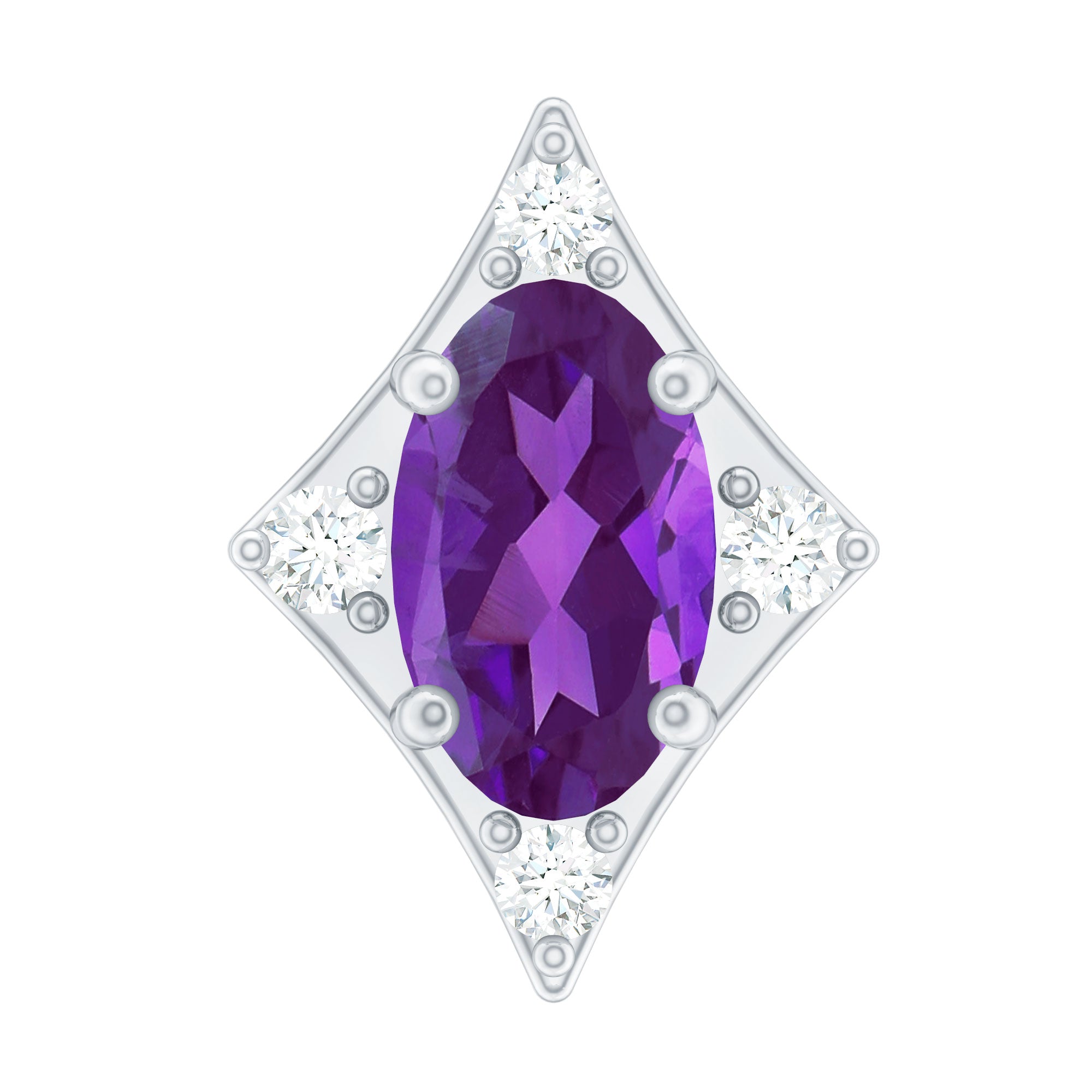 Oval Natural Amethyst Geometric Tragus Earring with Moissanite ‐ AAA / 18K White Gold / Flat Back 7.0 MM
