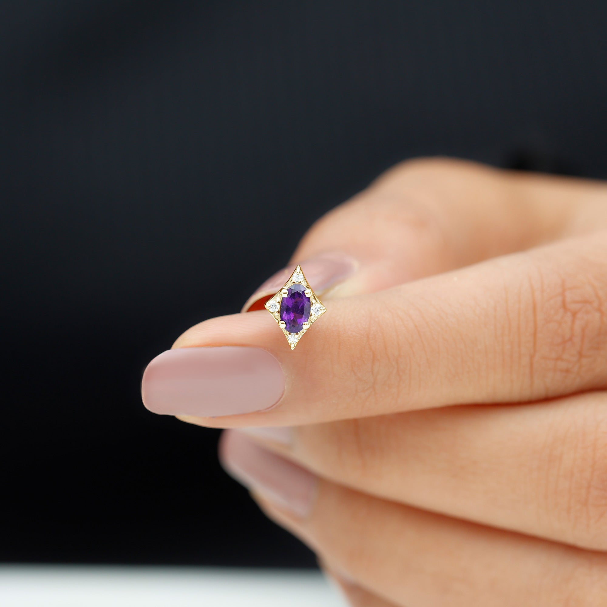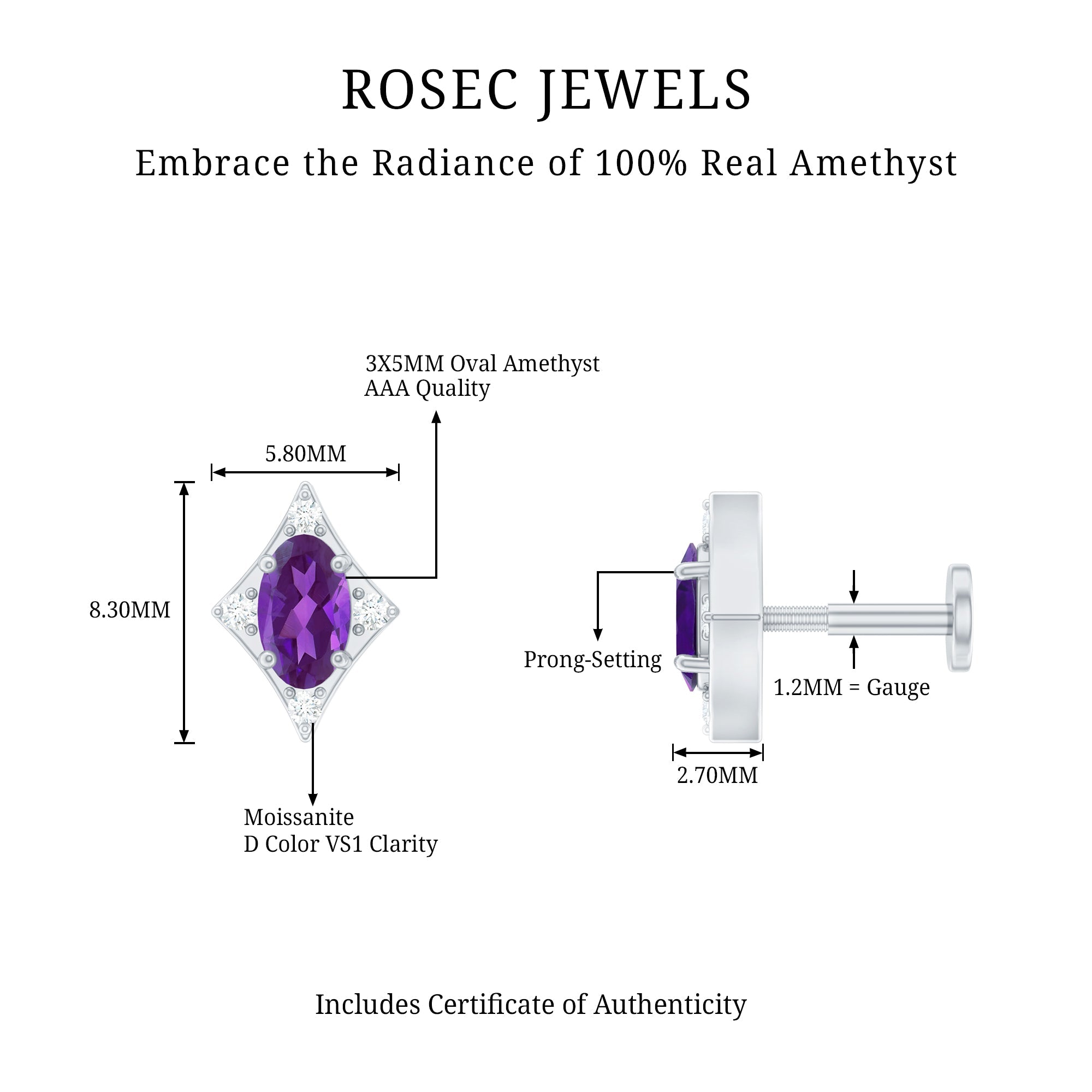 Oval Natural Amethyst Geometric Tragus Earring with Moissanite