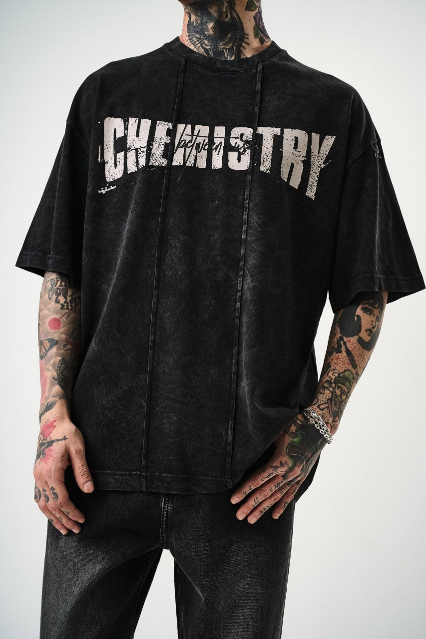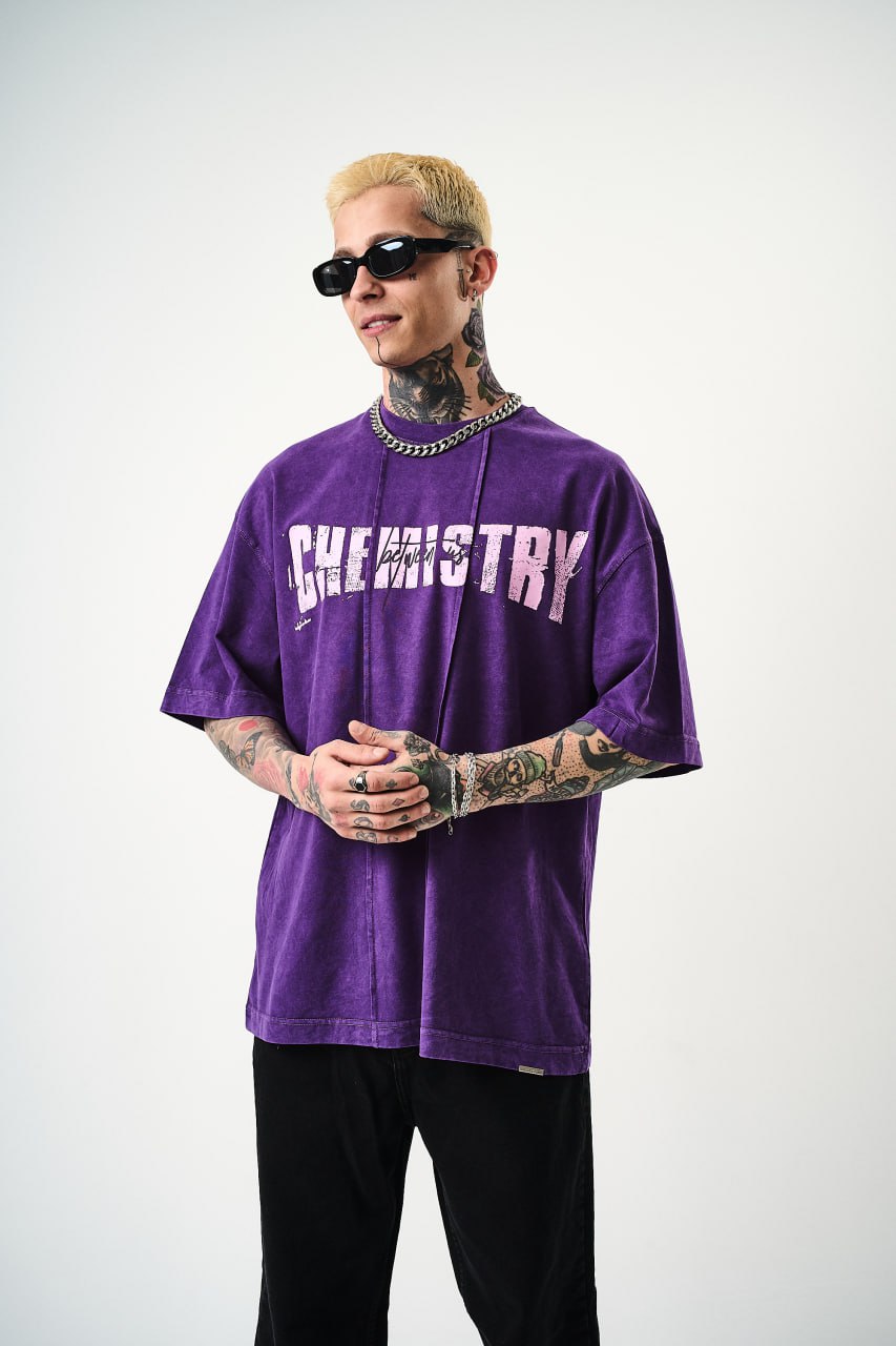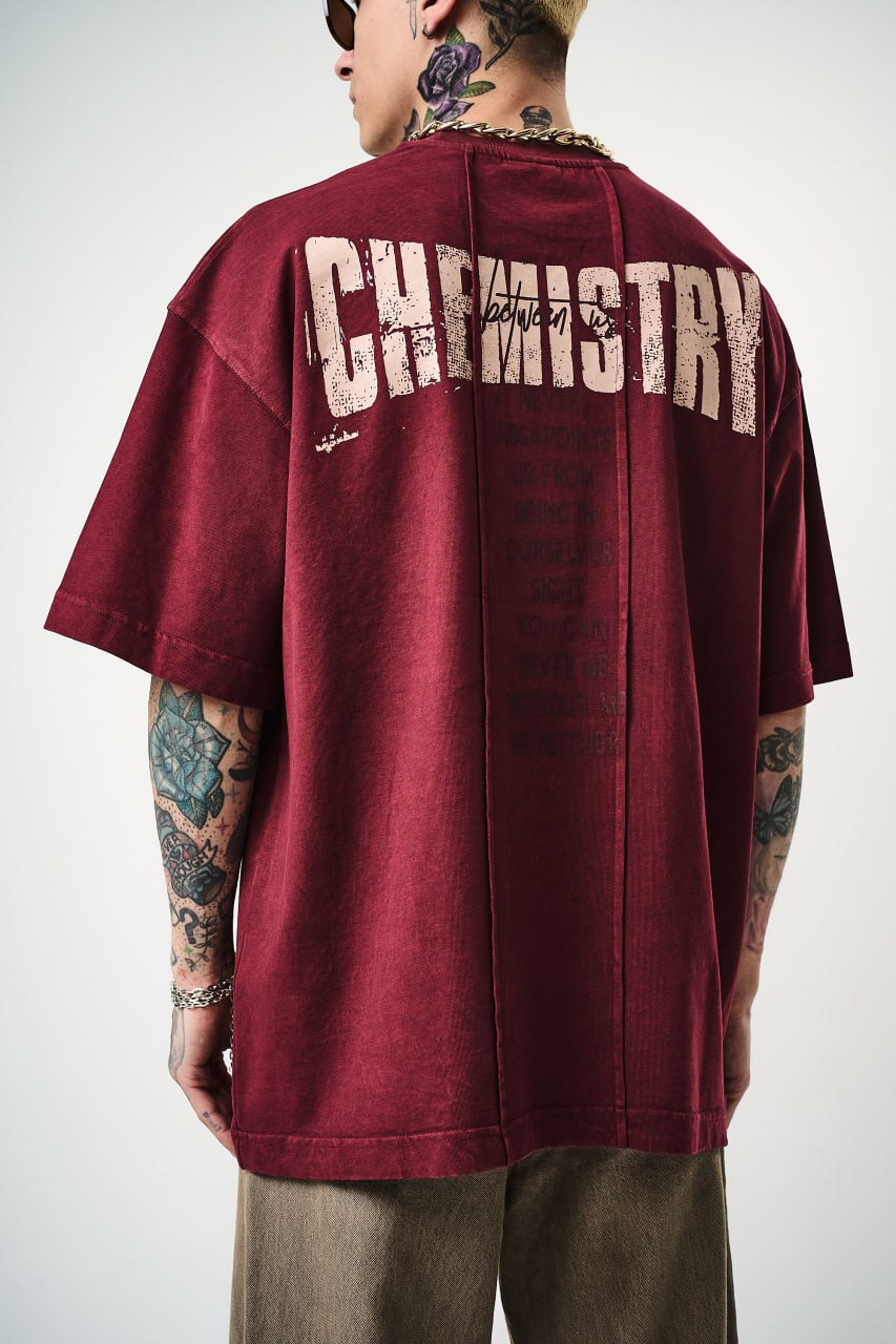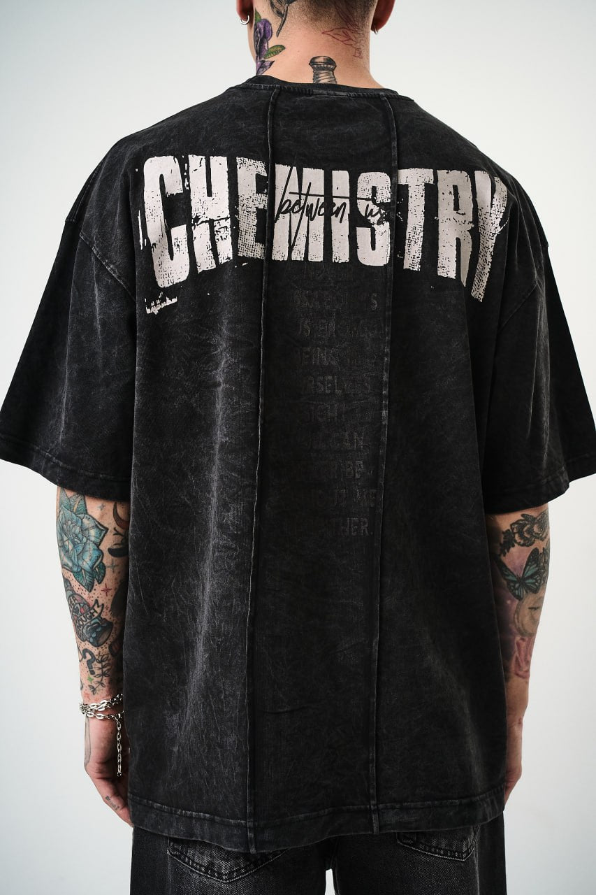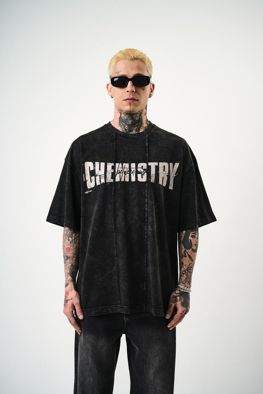 Show off your edgy side with the Chemistry Oversized Cotton Tee featuring a distressed graphic print. Crafted from 100% soft cotton, this t-shirt offers all-day comfort and a relaxed streetwear vibe. The unisex oversized fit adds a modern twist to your casual wardrobe.