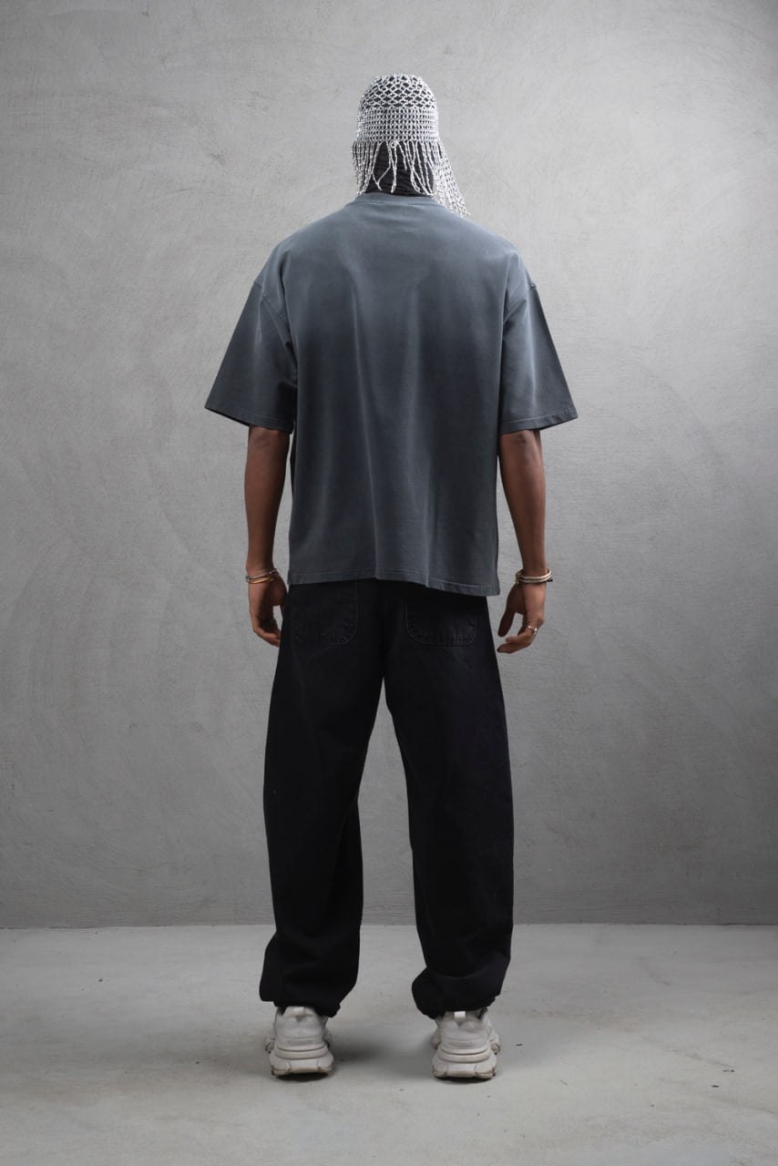 Oversize Cotton Tee – Creating New Roots Futuristic Print ‐ Grey / XL
