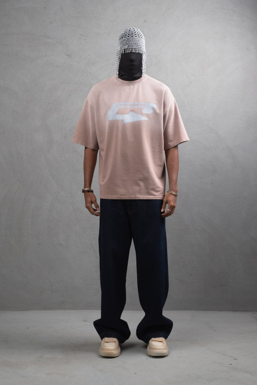 Oversize Cotton Tee – Creating New Roots Futuristic Print ‐ Pink / XL