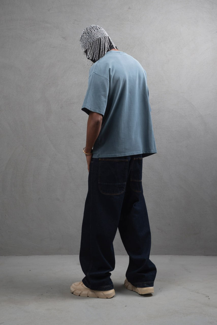 Oversize Cotton Tee – Creating New Roots Futuristic Print ‐ Blue / XL