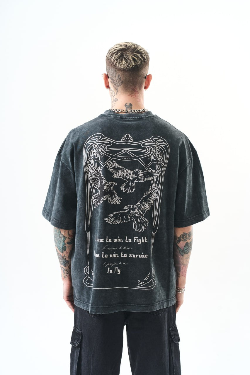 This tee symbolizes freedom and individuality through its crow motif. A powerful yet minimalist design that pairs easily with joggers or cargo pants.