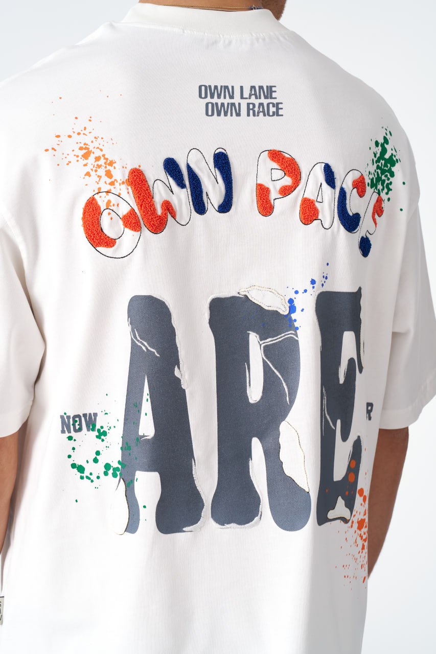 Move at your own rhythm with the Own Pace Oversized Cotton Tee, featuring a bold paint splatter design and inspirational "Own Pace" text. This artistic t-shirt reflects creativity and individuality through vibrant streetwear.