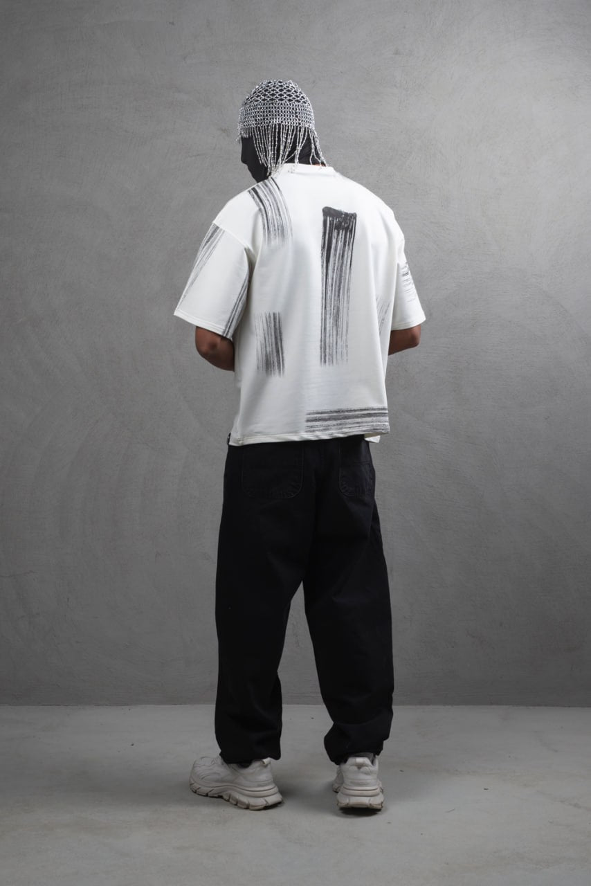 Oversize Graphic Cotton Tee – Abstract Vertical Stroke Print