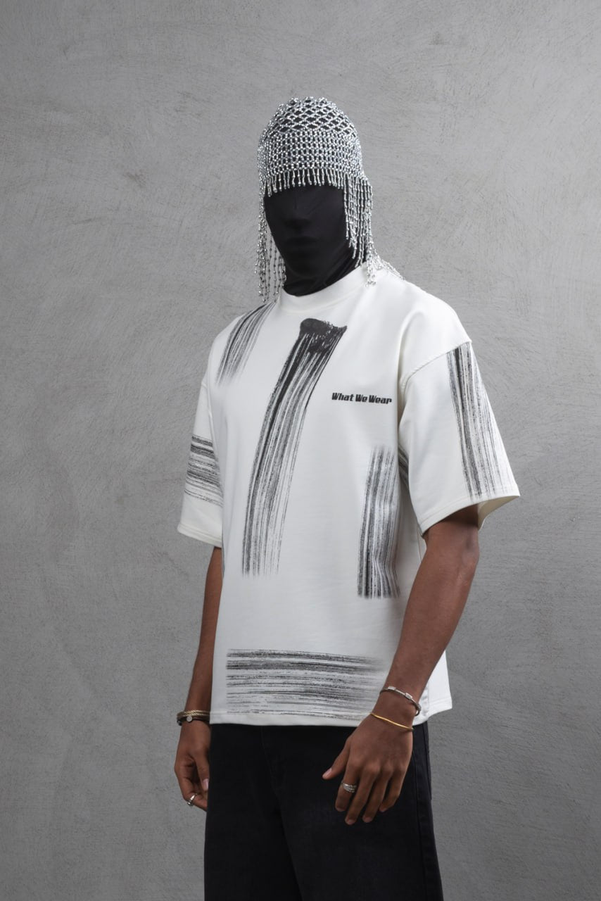 Show off your artistic side with the Abstract Vertical Stroke Print Oversize Cotton Tee. Designed with a unique vertical brushstroke pattern, this streetwear-inspired tee brings minimalism and modern expression together in one garment.