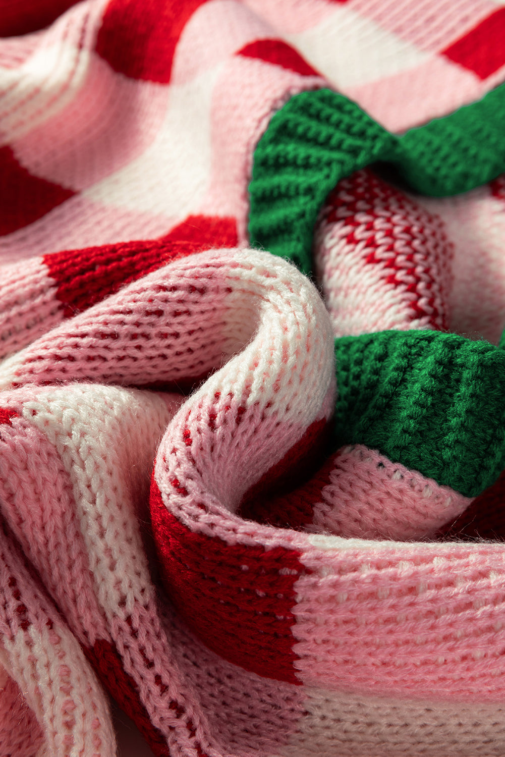 Plaid Bow Open Front Sweater Knit Cardigan ‐ Pink / XL