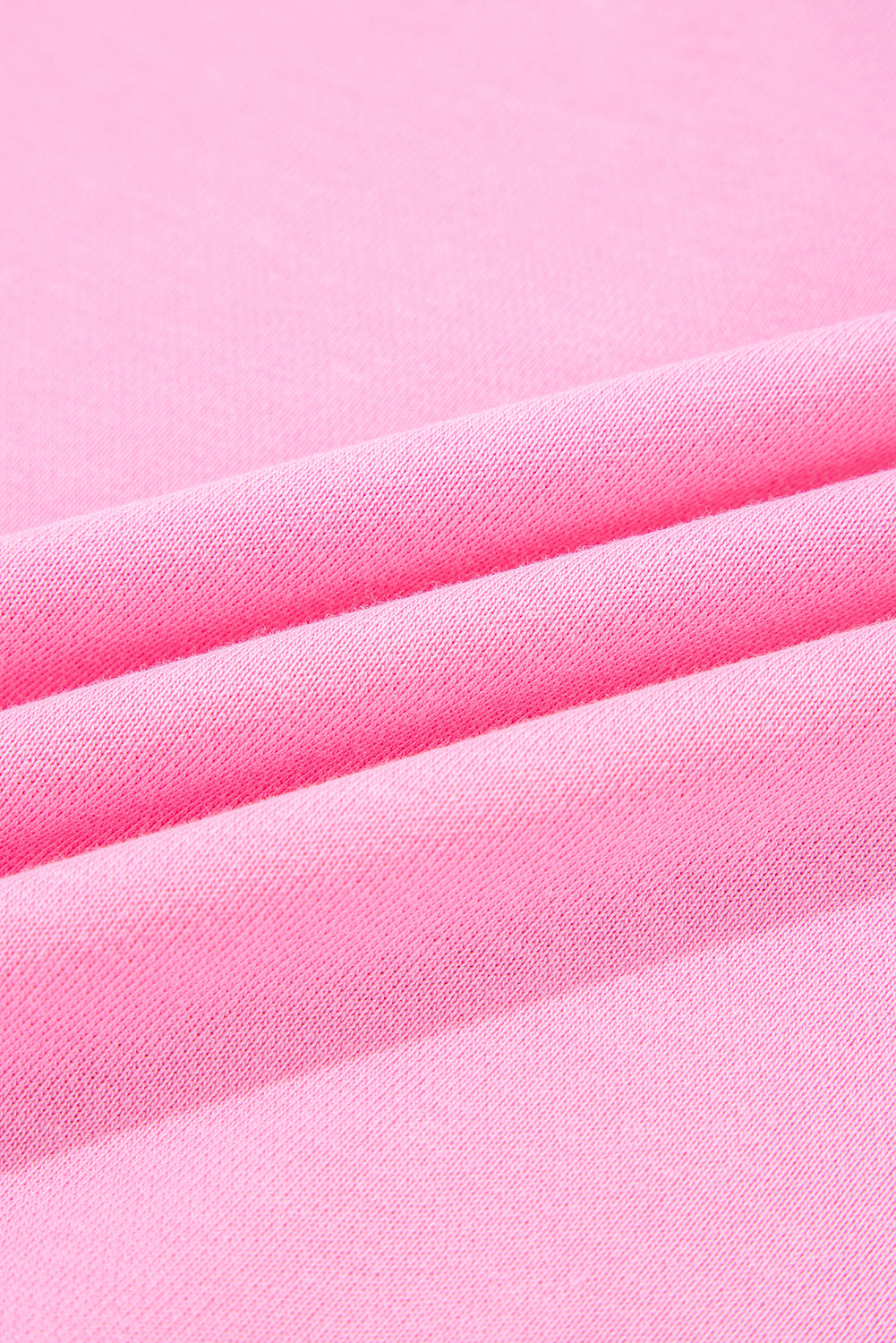 Plus Size Solid Ruffle Tiered Ribbed Crewneck Top ‐ Pink / 2X