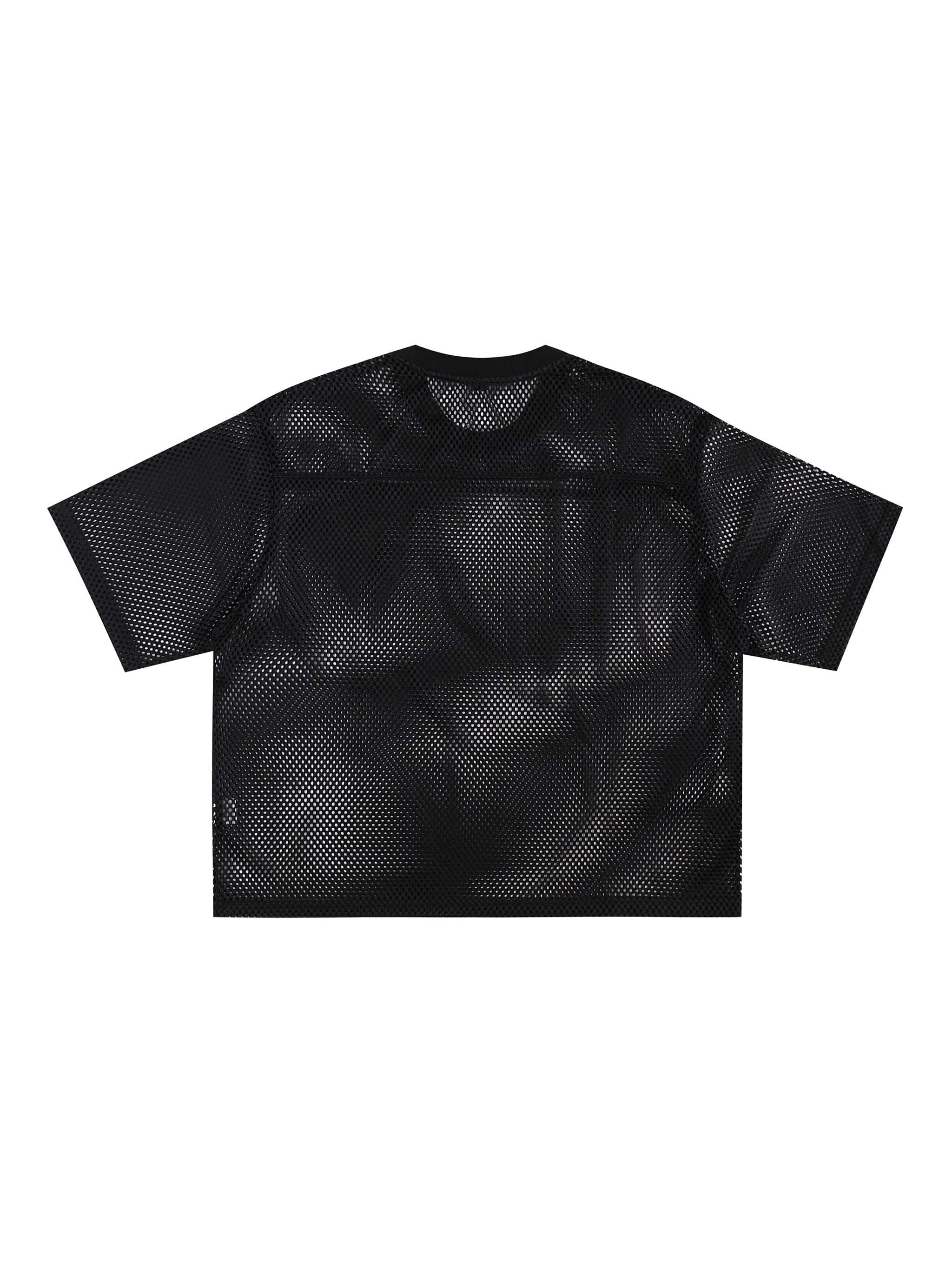 Regular fit that moves easy but still shows intent. The open-weave mesh gives that light, layered feel — perfect for summer drops or under heavy street jackets.