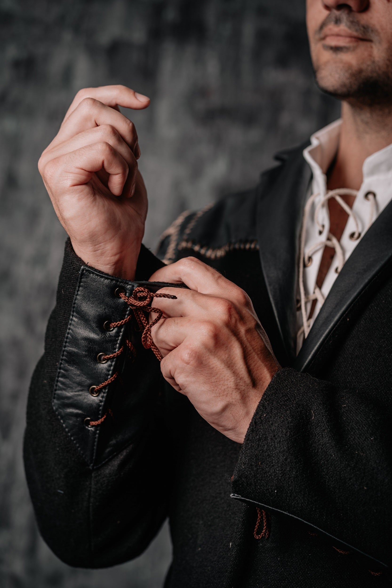 Introducing Ragnar's shirt in a modern design! This unique jacket combines the luxurious textures of leather and wool, creating a stylish and comfortable piece. With its sleek silhouette and attention to detail, this jacket is perfect for the modern fashion-forward individual. Handcrafted with care, it exudes both elegance and contemporary charm. Materials: Leather, Wool.