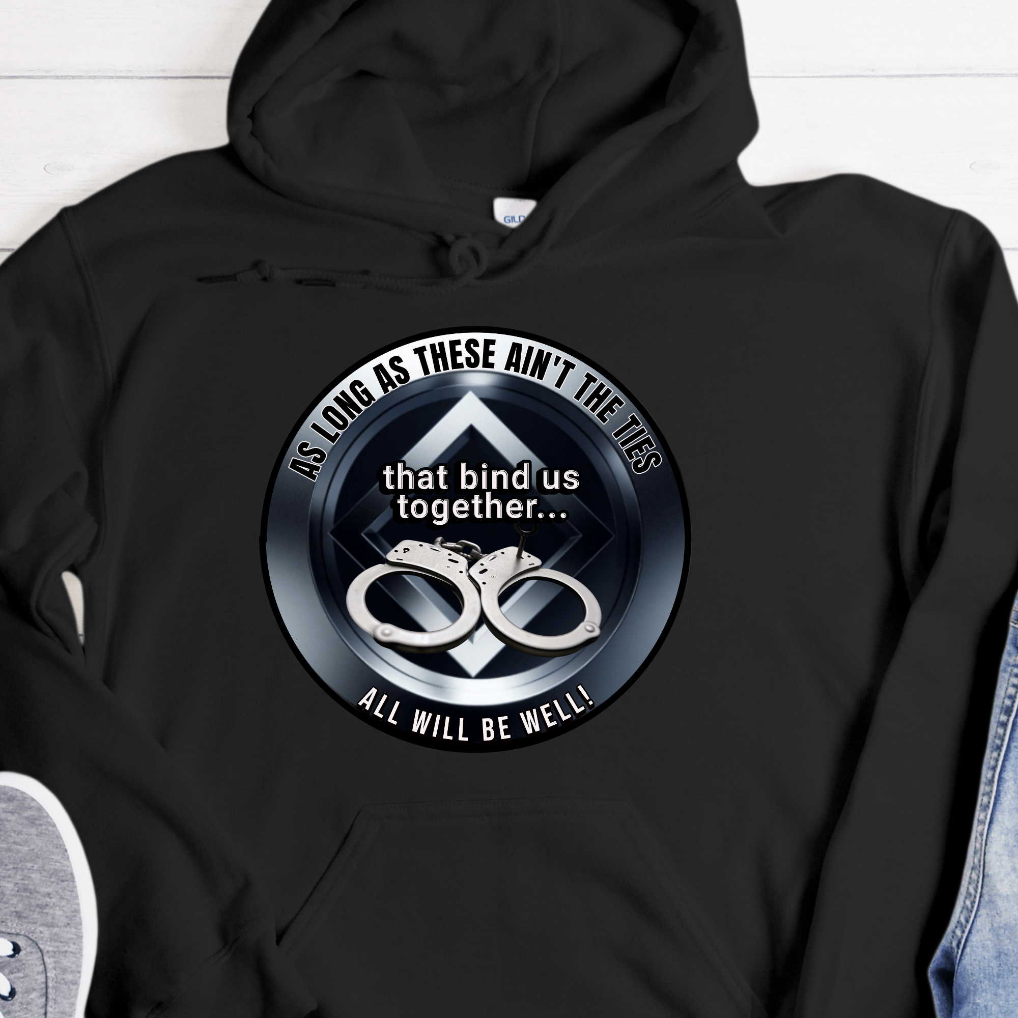 Embrace your recovery journey with our Recovery Hoodie, featuring a playful nod to the iconic phrase "-Nod to the classic phrase "the ties that bind" with this playful hoodie -Let the world know your legal troubles are a thing of the past -Choose between the AA or NA symbol to represent your inspiring journey