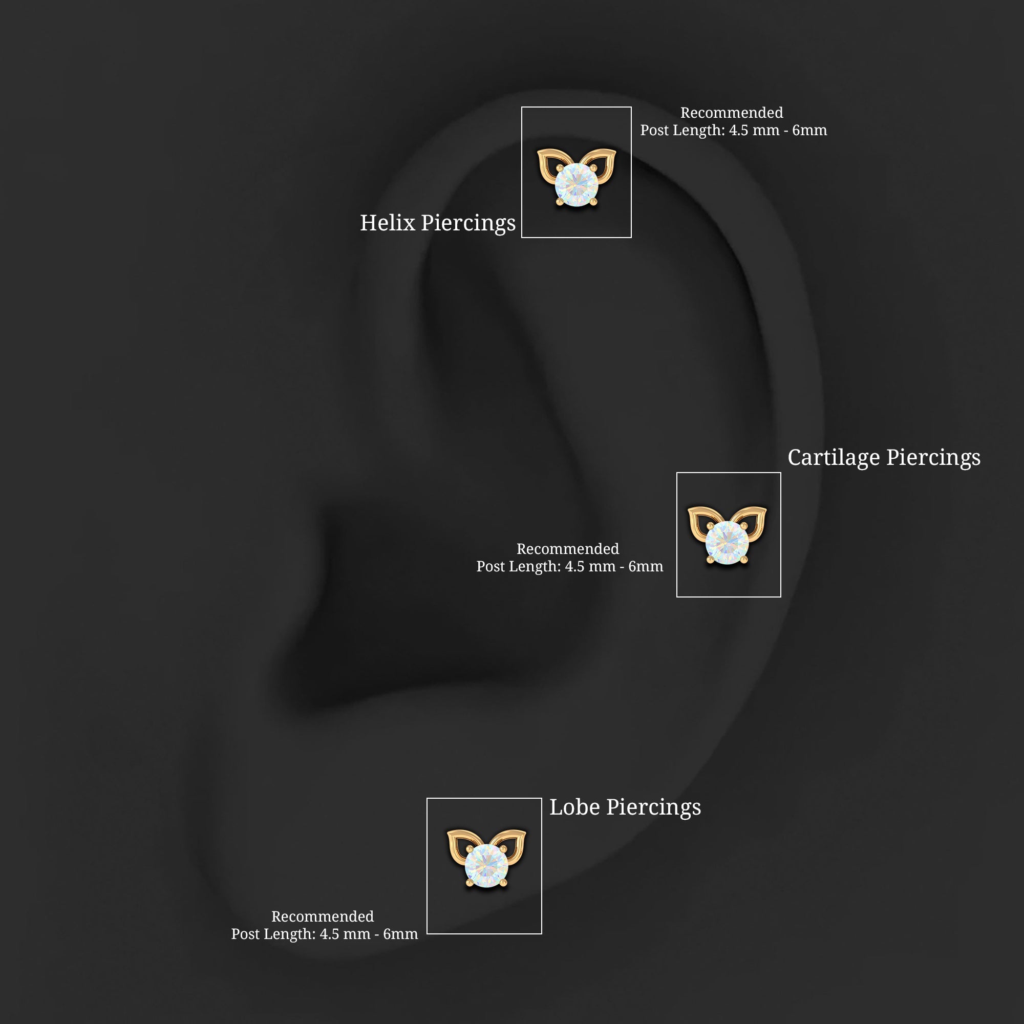 Round Ethiopian Opal Cute Cat Cartilage Earring ‐ AAA / 18K White Gold / Flat Back 4.5 MM