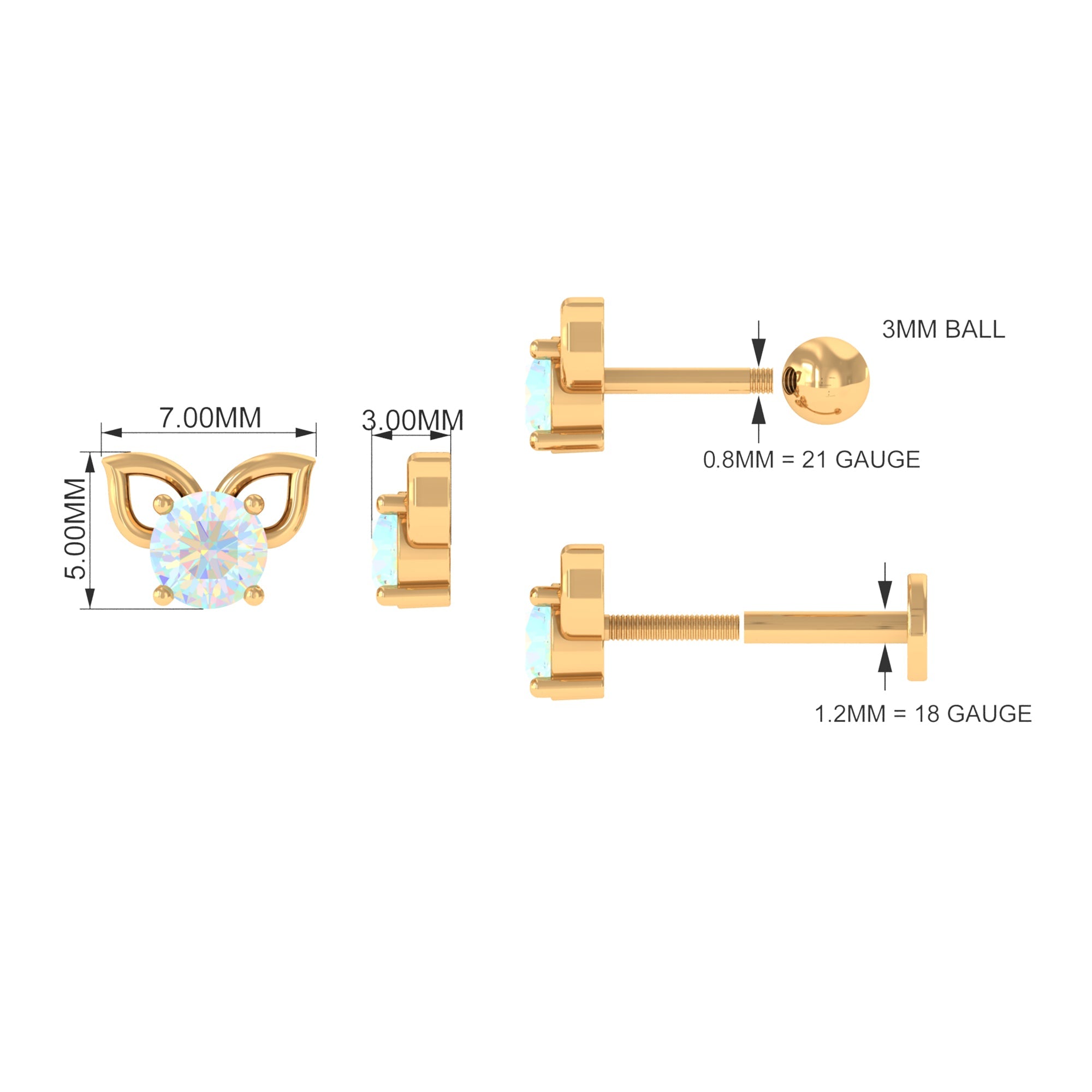 Round Ethiopian Opal Cute Cat Cartilage Earring ‐ AAA / 14K Yellow Gold / Flat Back 4.5 MM