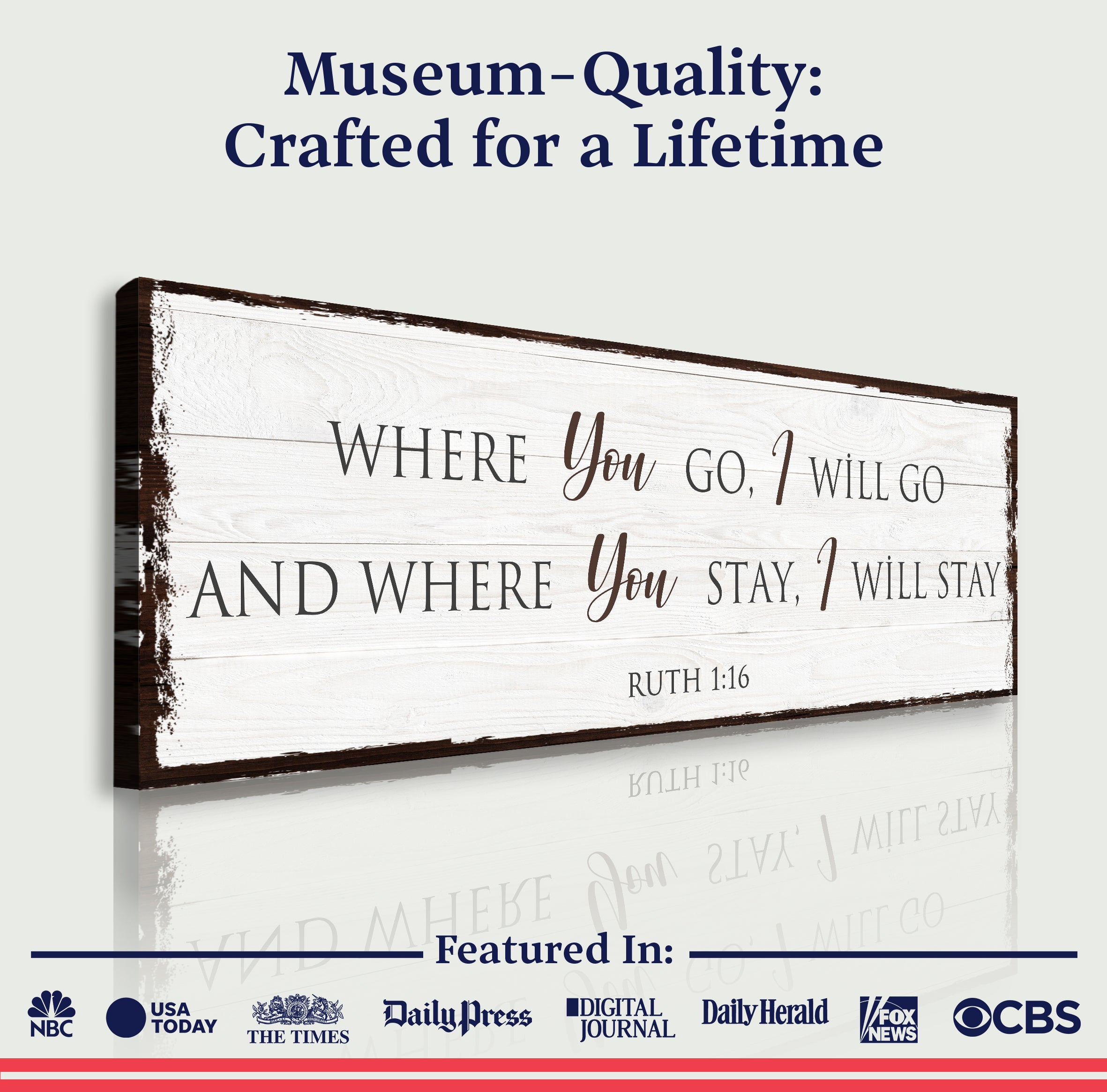Ruth 1:16: Where You Go I Will Go Faith Sign ‐ 20x60 inch Extra Large Premium Gallery Wrapped