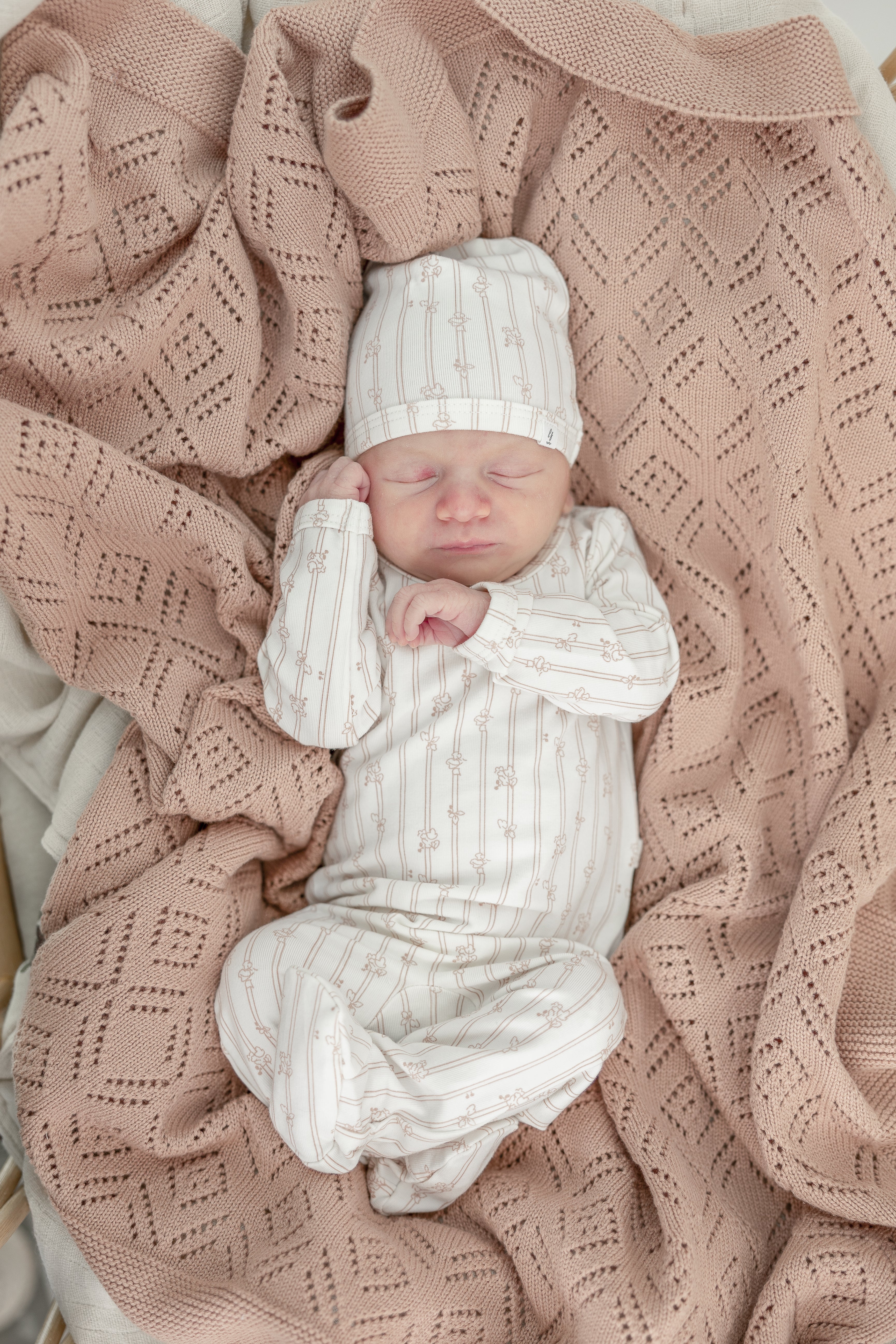 Soft Cotton Modal Onesie and Hat ‐ Off White/Blossom / 9 Months
