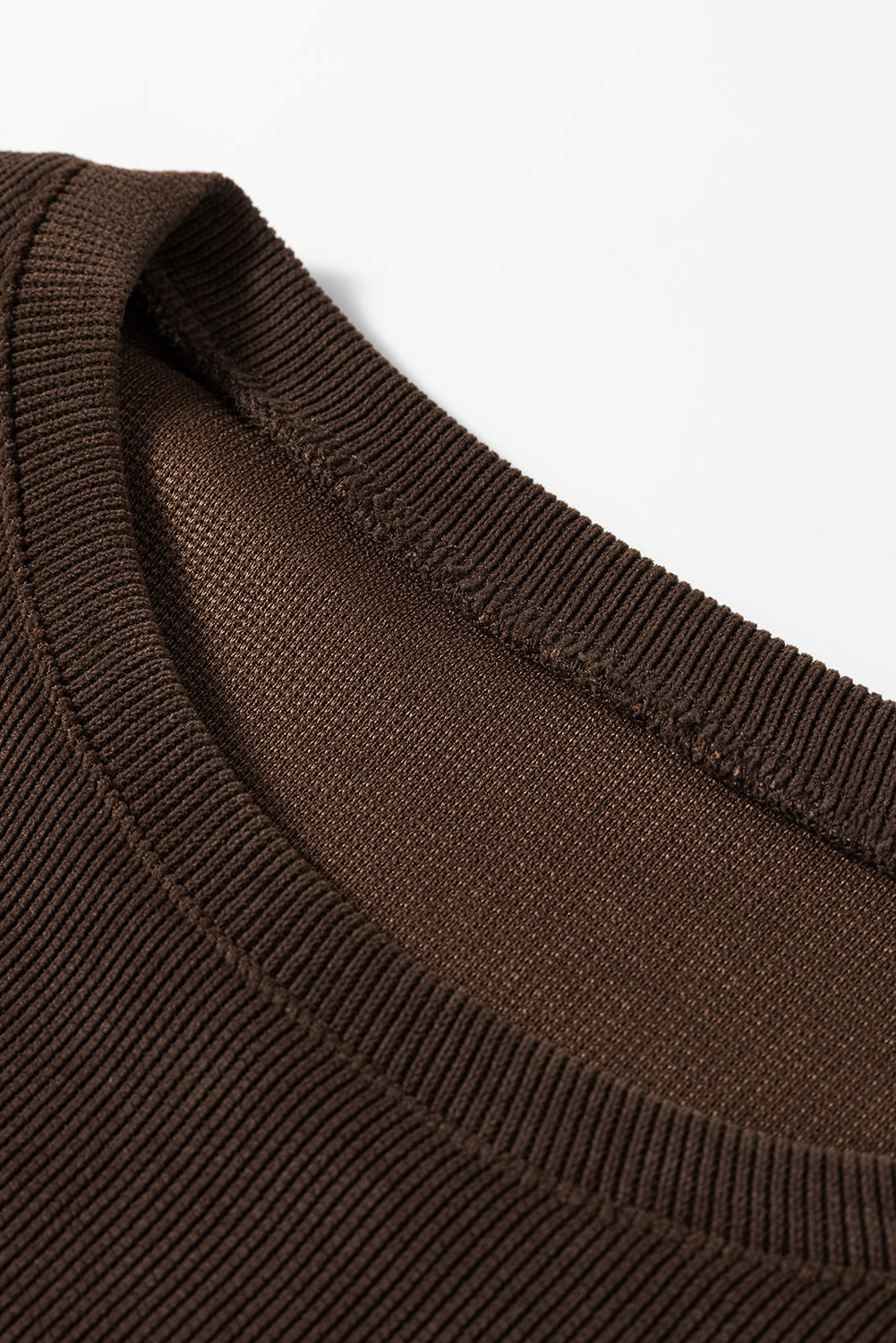 Solid Textured Knit Pullover and Shorts Set ‐ Dark Brown / S