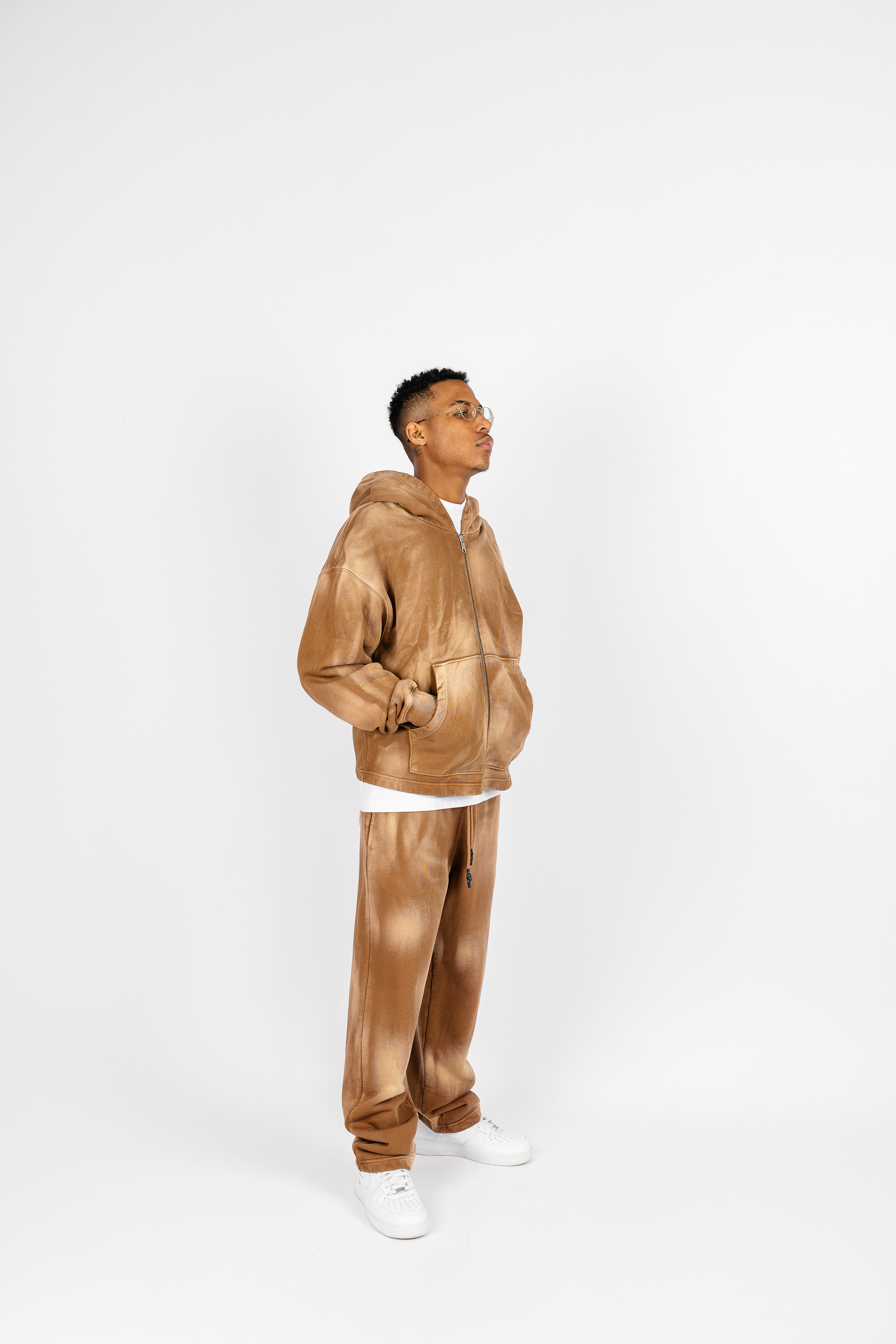 Sun-Dried Zip Up and Sweatpants Set ‐ Brown / Small