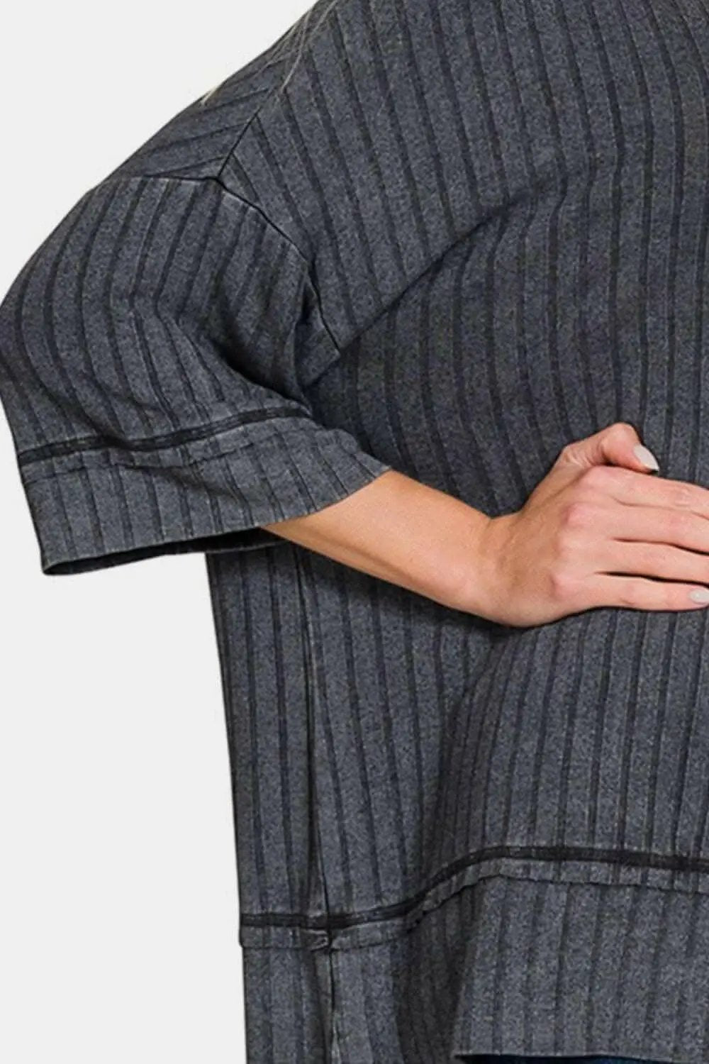 Top - Ribbed Drop Shoulder - Zenana Style ‐ ASHBLACK / L/XL