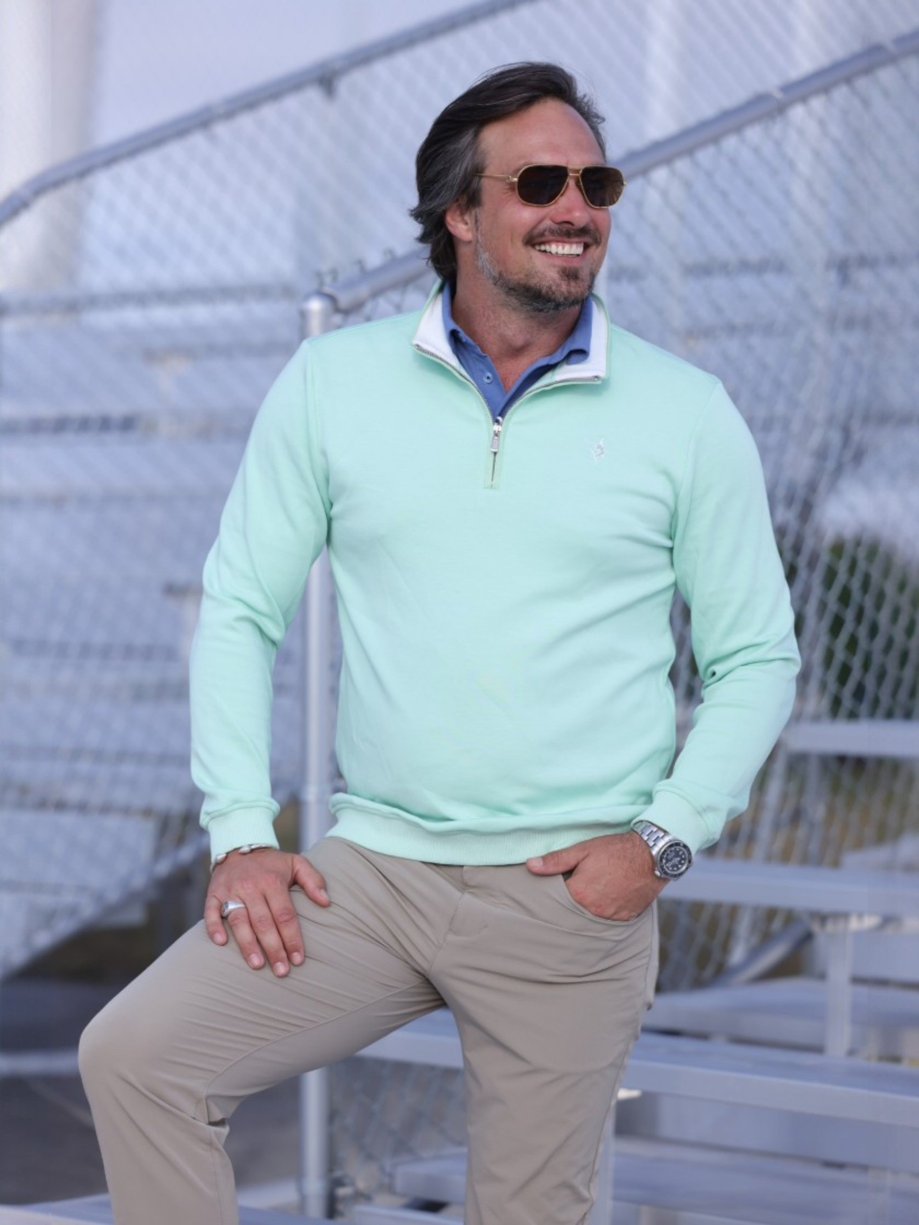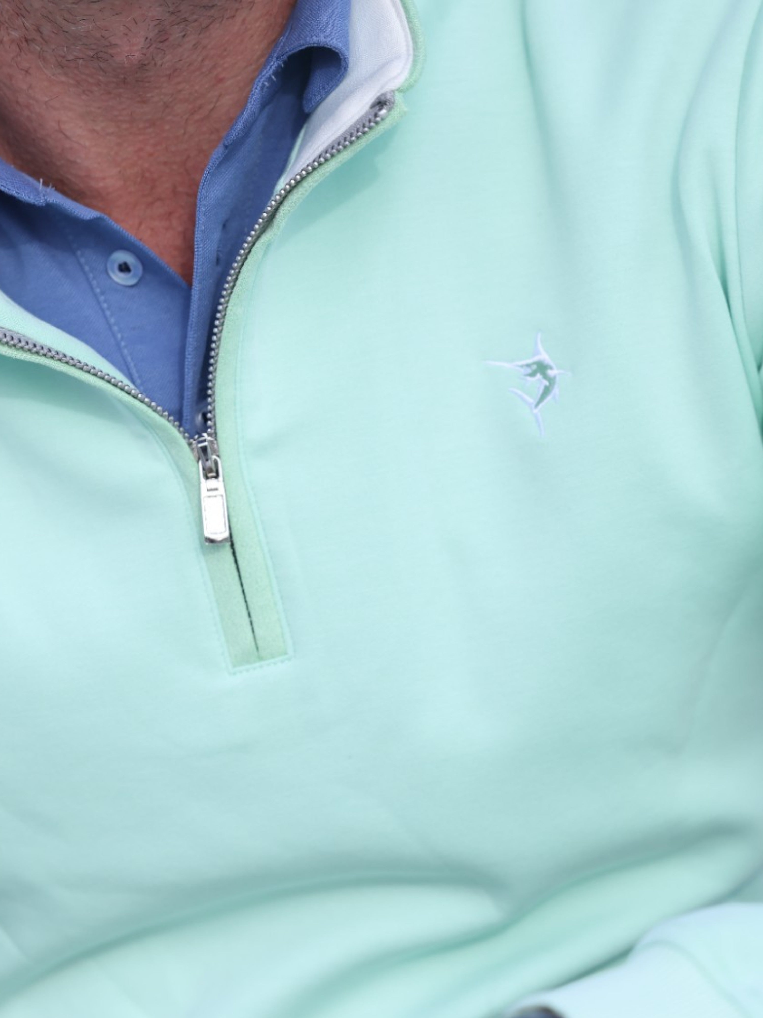 The New Turnberry offers a silky soft comfort feel. The fabric is a combination with modal as the majority. The modal fabric is a unique blend and provides softness and comfort for everyday wear and enjoyment. The zipper is suede with a classy chrome zipper pull. A multipurpose top that provides great style for dinner and the office, with the functionality for the course.