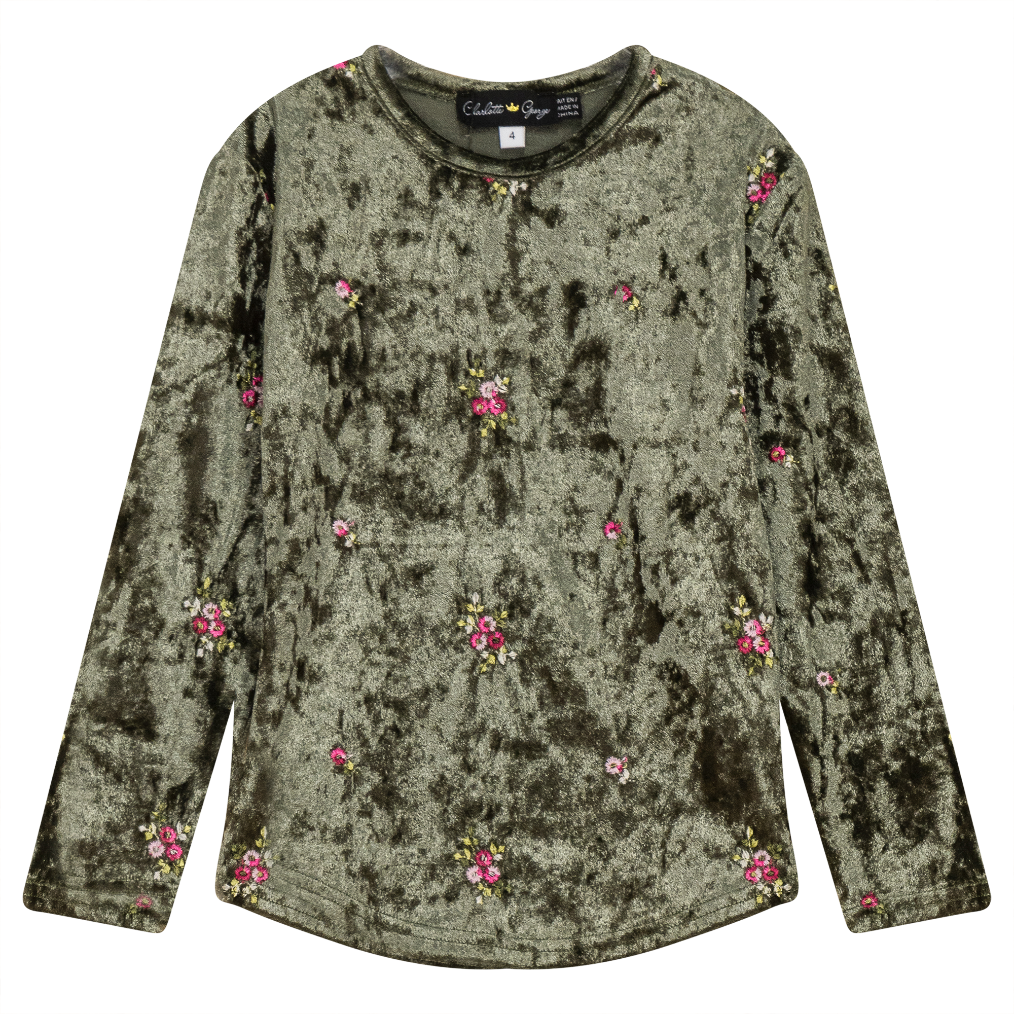 Girls long sleeve crushed velour flower embroidered top. ֲ
