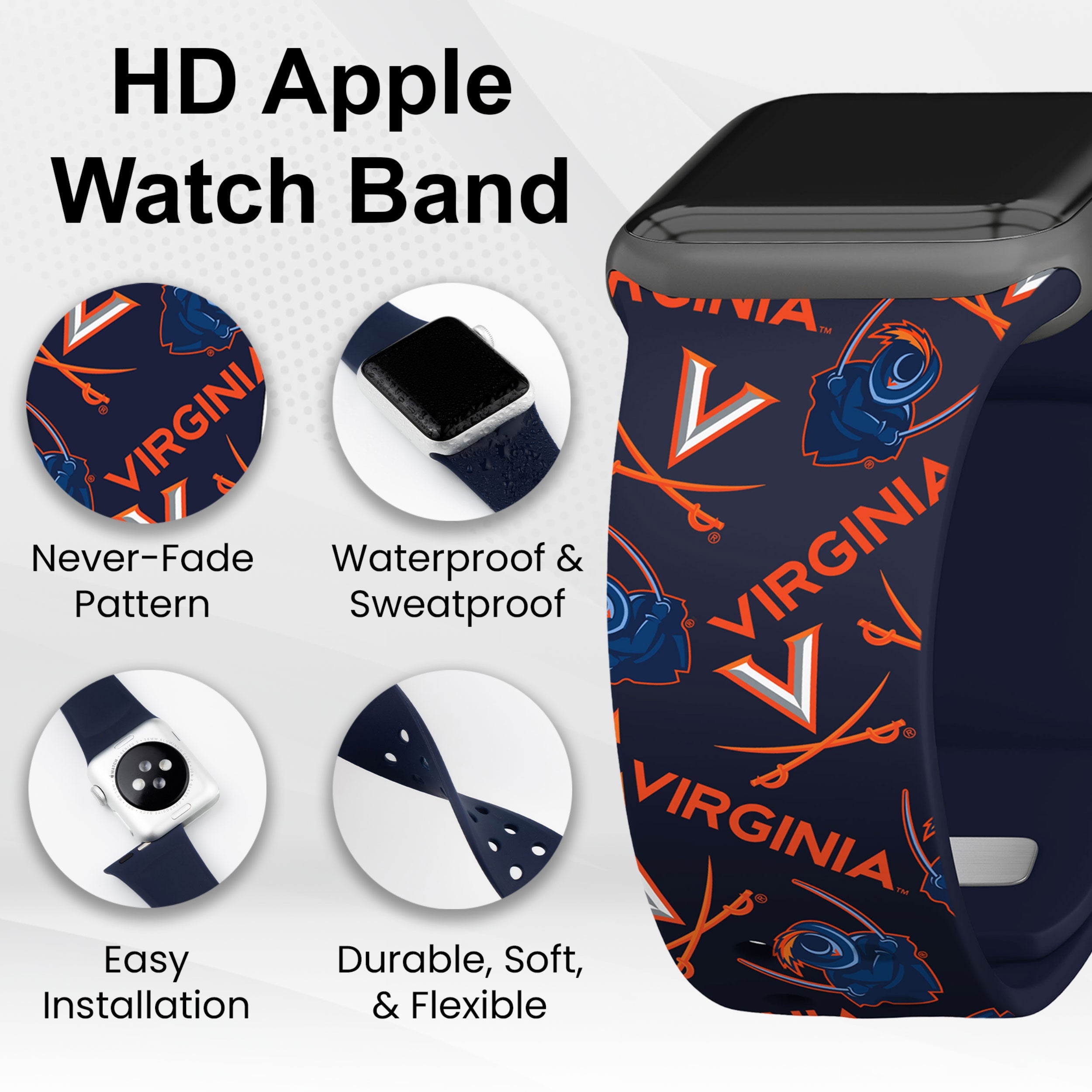 Virginia Cavaliers HD Apple Watch Band ‐ Repeating / 42/44/45/49mm(46mm Series 10) / Short