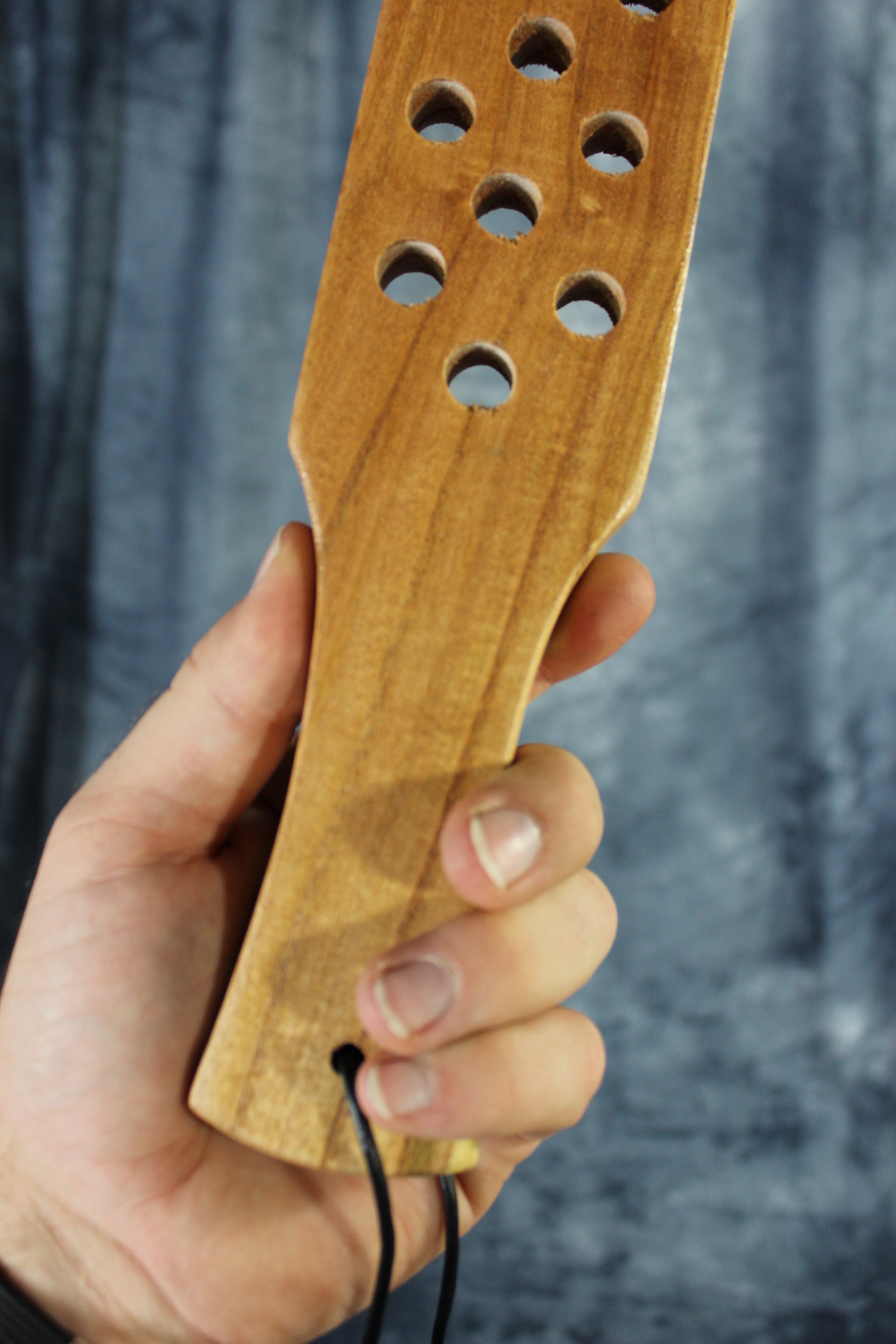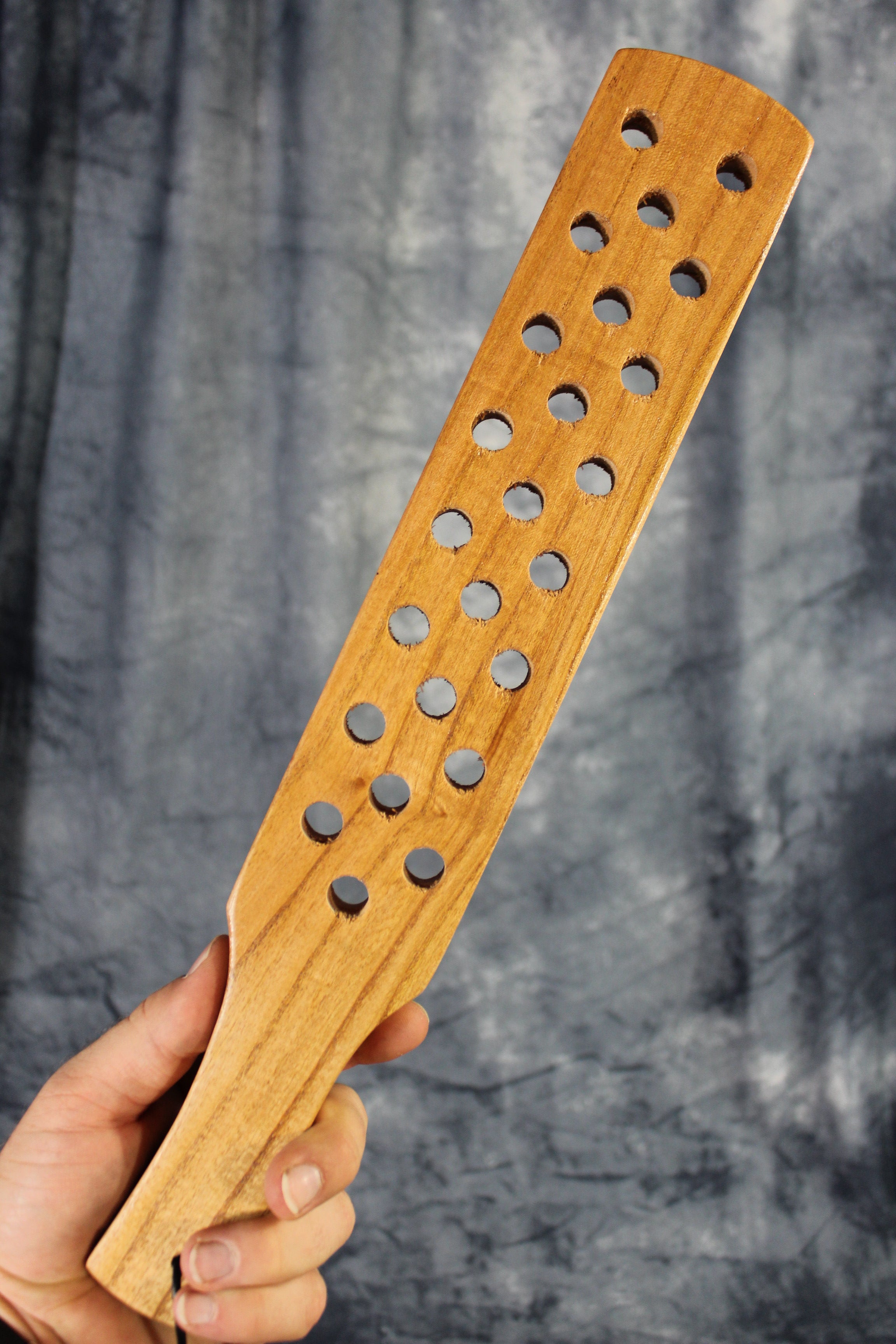 This sturdy paddle is a must have for any dungeon. It's made of thick solid wood for a hefty feel and a good heavy swat. Make you sub beg for mercy with a few good love taps with this classic beauty!