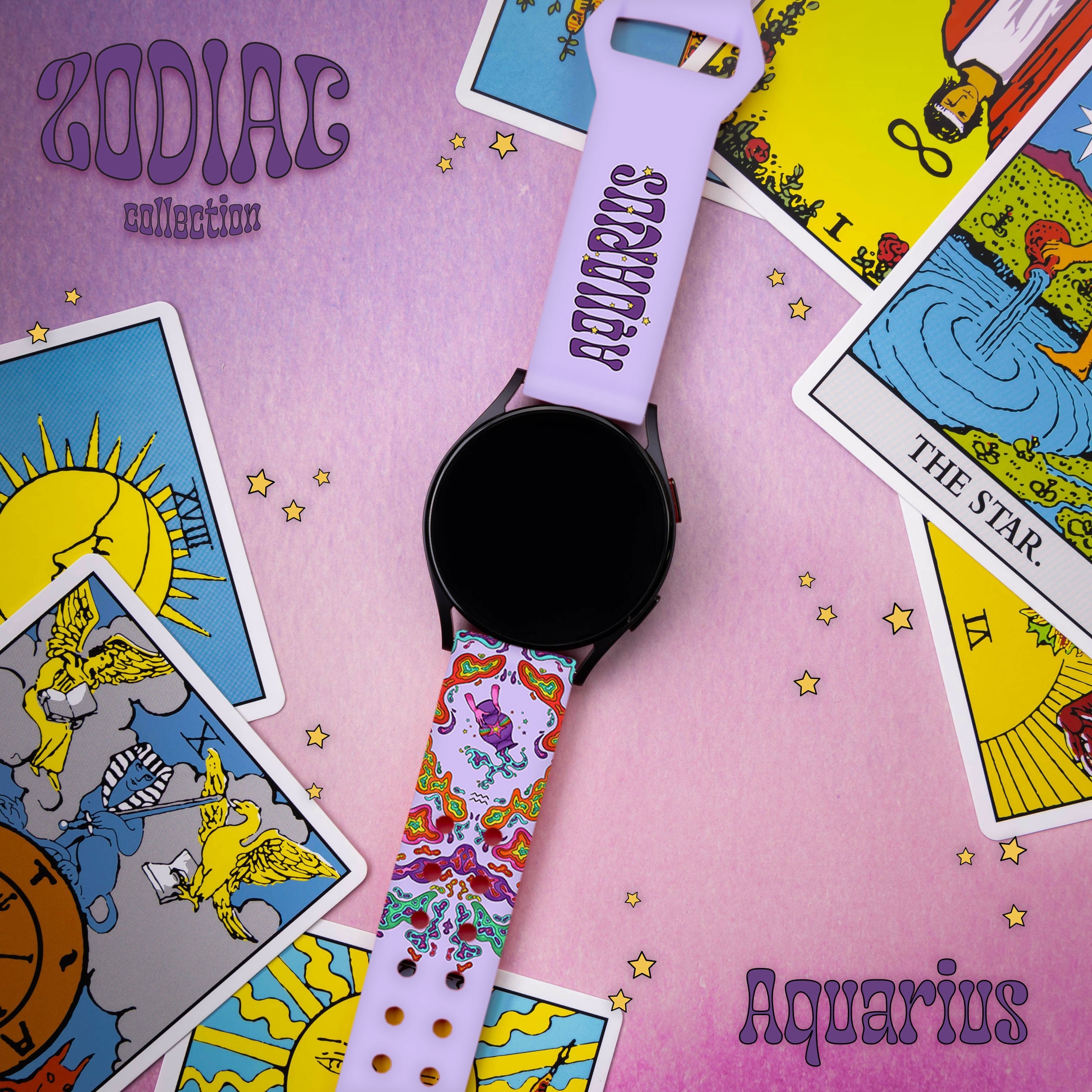 Zodiac Collection HD Watchband for Samsung, Garmin, Fossil, and More ‐ Aquarius / Galaxy S22mm / Short