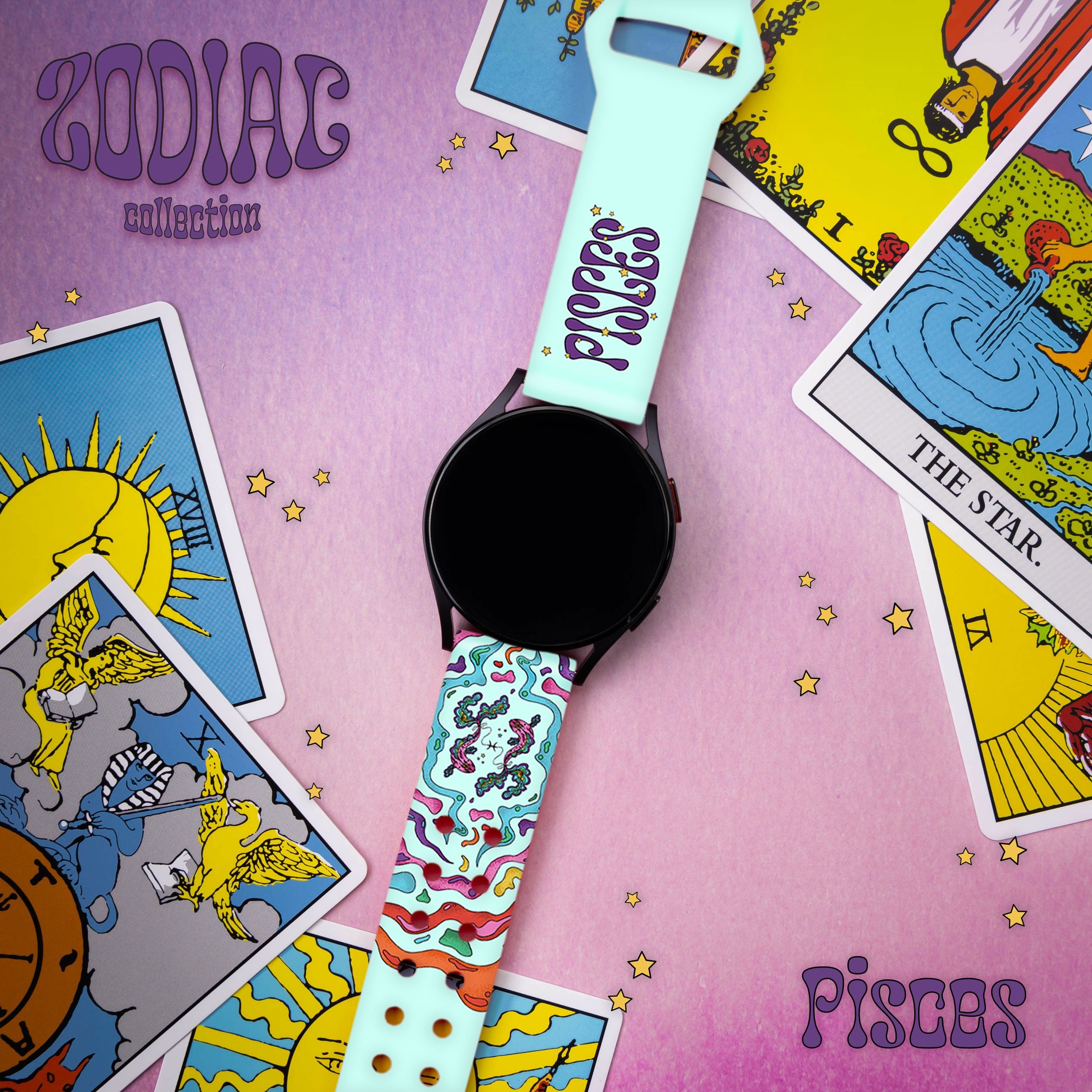 Zodiac Collection HD Watchband for Samsung, Garmin, Fossil, and More ‐ Pisces / Galaxy S22mm / Short