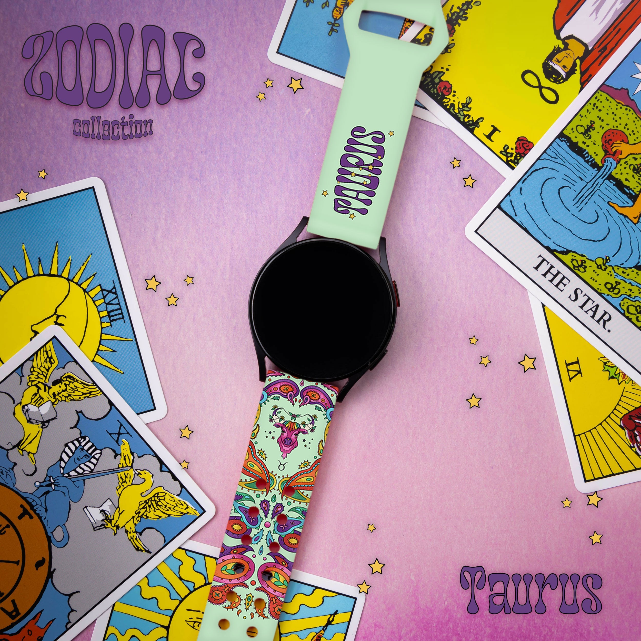 Zodiac Collection HD Watchband for Samsung, Garmin, Fossil, and More ‐ Taurus / Galaxy S22mm / Short