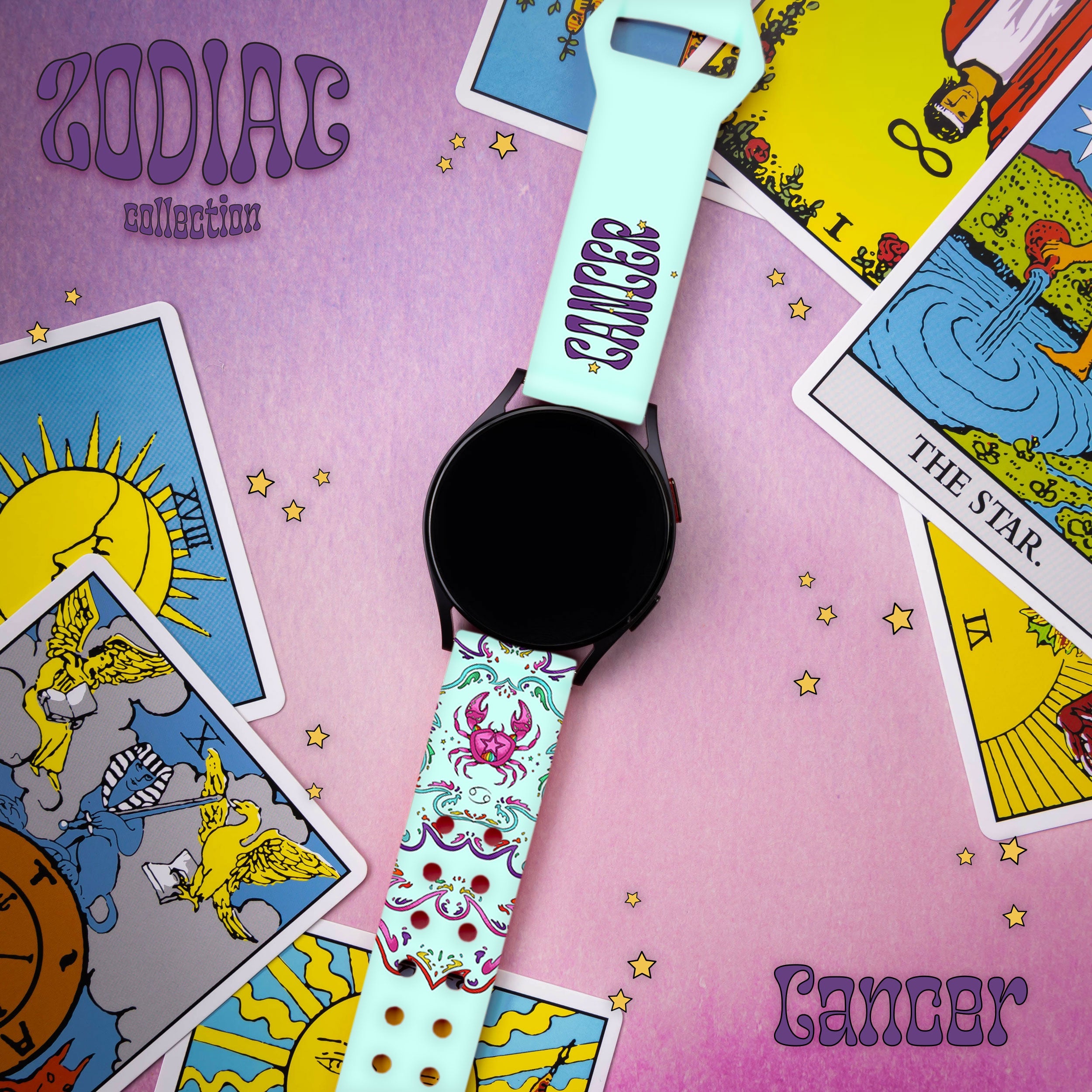 Zodiac Collection HD Watchband for Samsung, Garmin, Fossil, and More ‐ Cancer / Galaxy S22mm / Long