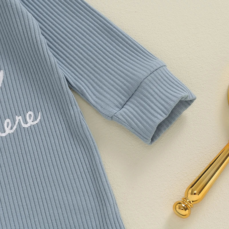 Baby Boys Girls 2Pcs Hi I'm New Here Romper Letter Print Long Sleeve Crew Neck Jumpsuit Bodysuit with Hat Set ‐ Blue / 0-3M / United States