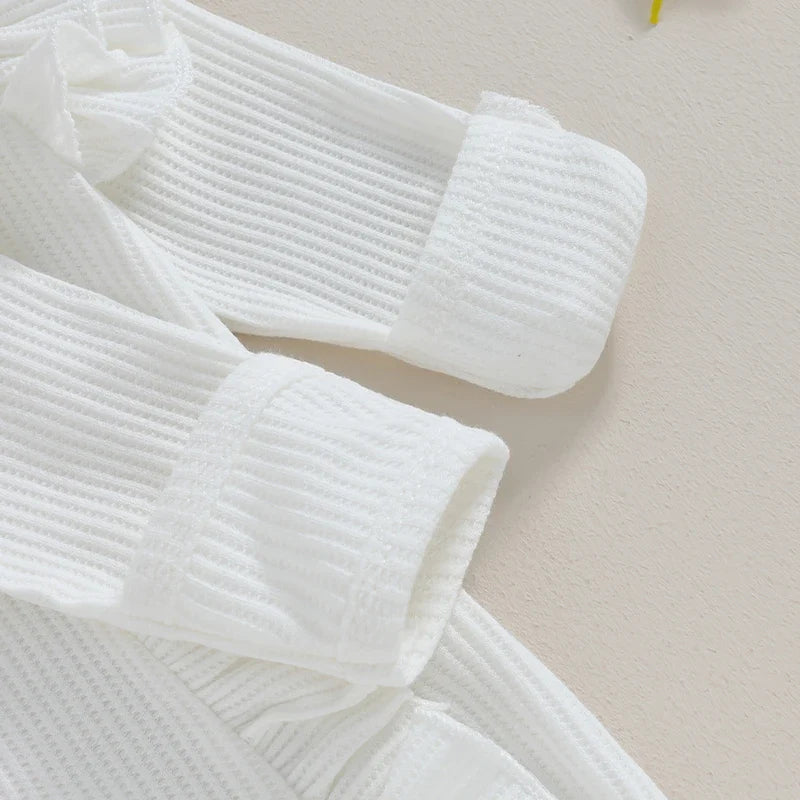 Baby Girl 2Pcs Clothes Ruffle Zipper Romper Long Sleeve Jumpsuit with Bow Headband ‐ WHITE / United States / 12M