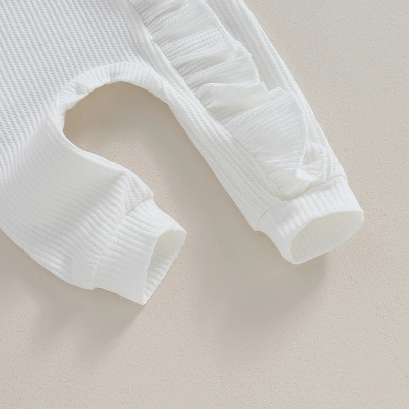 Baby Girl 2Pcs Clothes Ruffle Zipper Romper Long Sleeve Jumpsuit with Bow Headband ‐ WHITE / United States / 6M