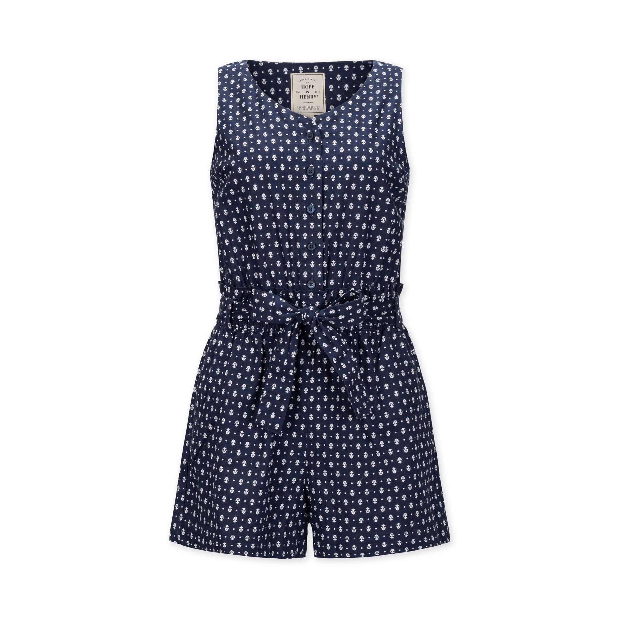 A waist sash and an easy to wear sleeveless silhouette elevates the beach-ready appeal of our breezy summer romper. Cut from our soft organic cotton and linen blend. Features a button front closure and a cinch waist detail with removable sash for styling options. And did we mention - it has pockets?
