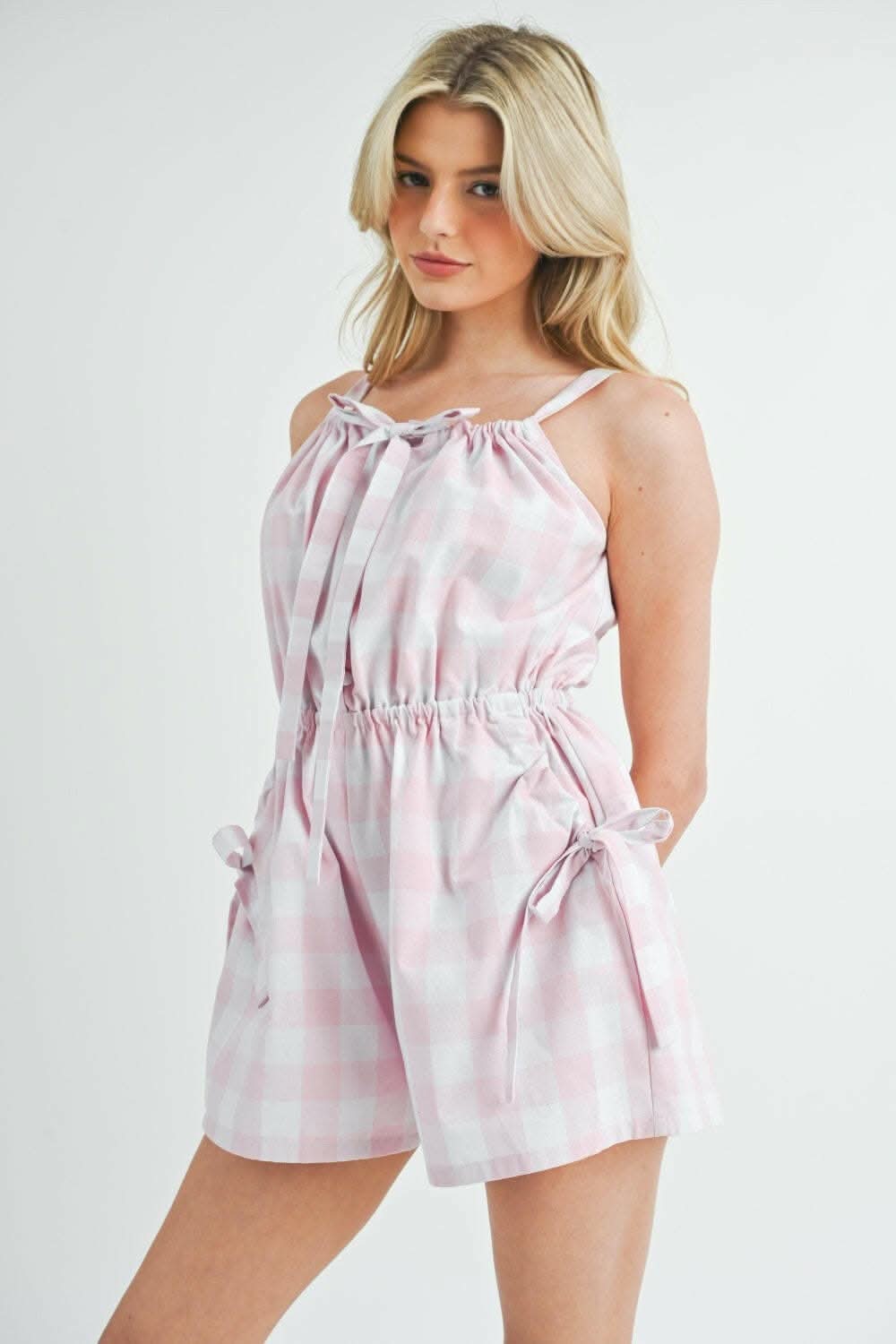 just arrived - MABLE Plaid Sleeveless Button Down Romper ‐ Pink / S