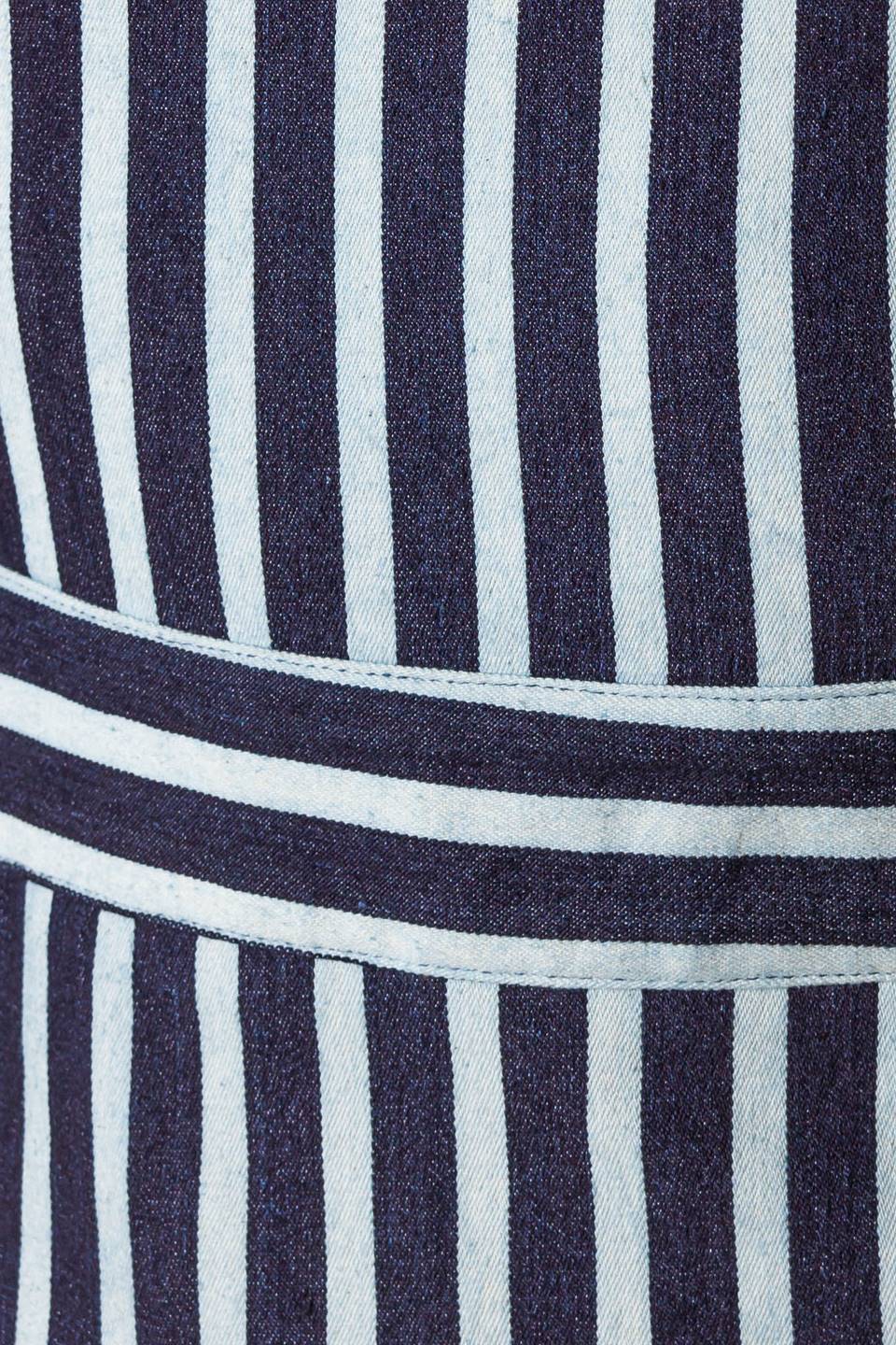 A striped woven skort romper featuring off shoulder neckline, ric rac ribbon hem and back zipper closure.