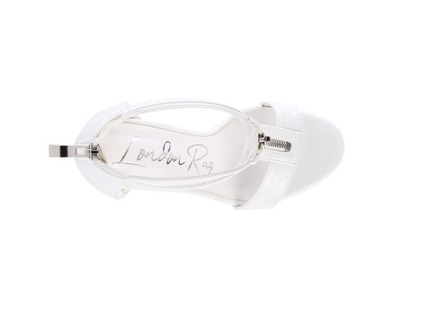 FELICITY Zip Up Croc Textured Sandals ‐ White / 9