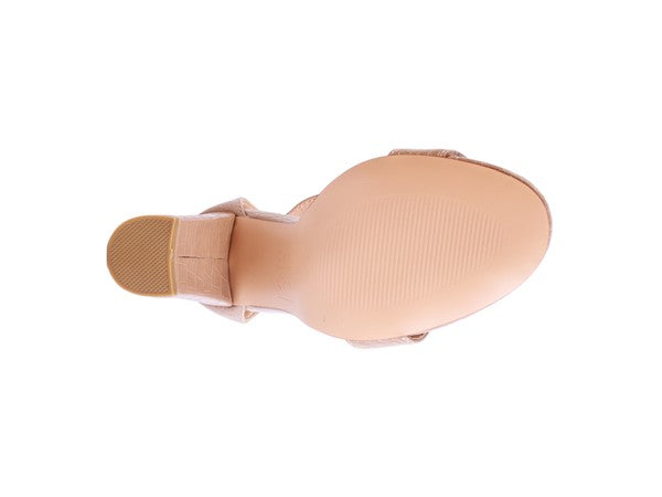 FELICITY Zip Up Croc Textured Sandals ‐ Nude / 10