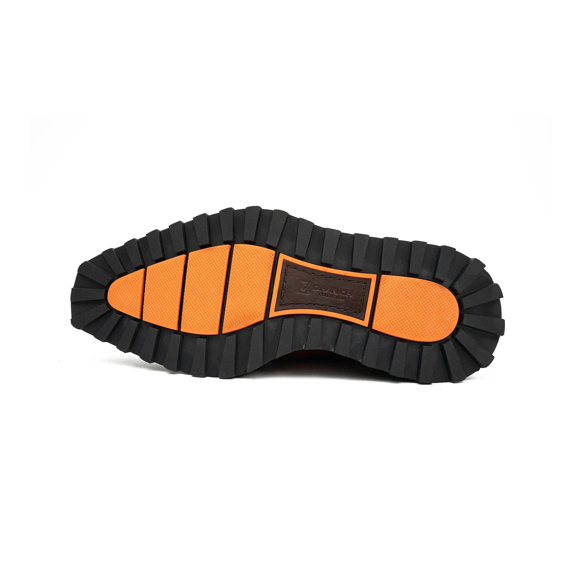 Handcrafted with heavy - duty artistry, these brown leather brogue monk shoes feature classic monk straps and intricate brogue detailing. The chunky sole, highlighted by an orange line, merges vintage charm with modern edge. Meticulously made, they offer exceptional comfort, perfect for elevating both formal and smart - casual looks, letting every step showcase refined craftsmanship and unique style