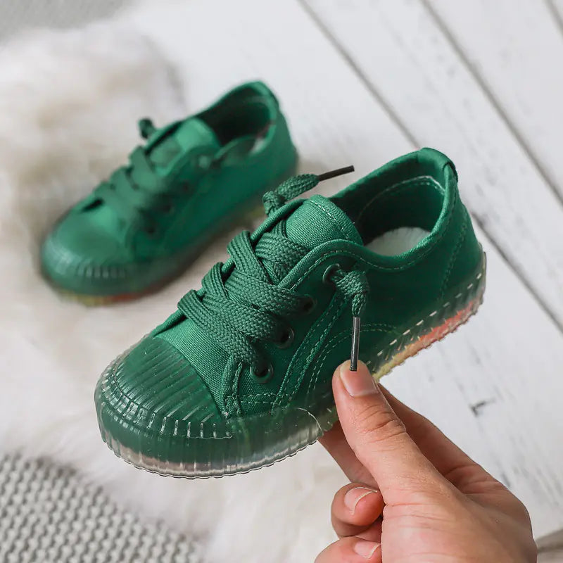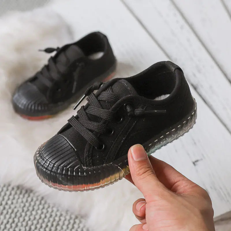 Crafted with a durable canvas upper and a rubber sole, these shoes provide both flexibility and support for growing feet. The unique jelly sole not only adds a fun touch but also ensures excellent grip and traction, making every step safe and secure.