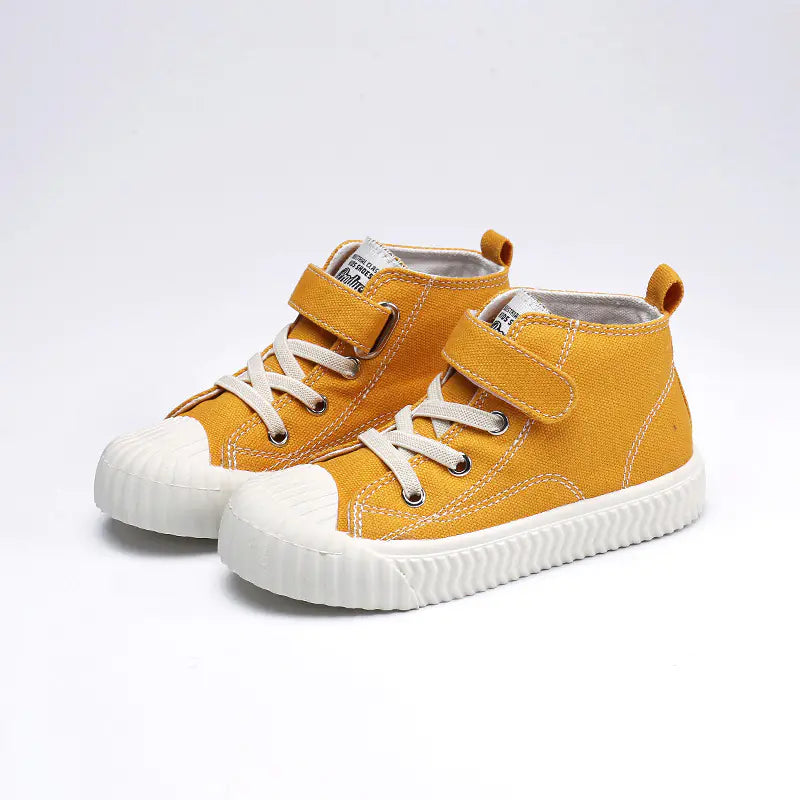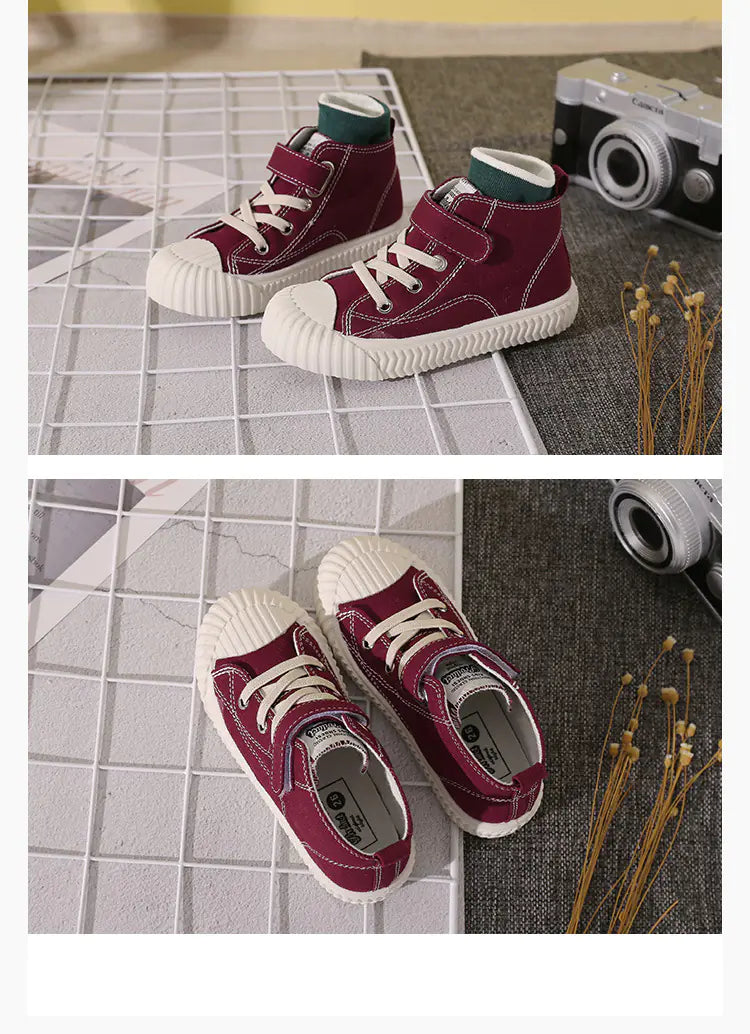 Introducing our stylish and comfortable high-top casual shoes designed for children! These shoes are perfect for the fall season, blending modern fashion trends with practicality. The shoes feature a breathable canvas upper that keeps little feet comfortable and dry, making them suitable for various activities such as jogging and long runs. With their wear-resistant and non-slip soles, parents can rest assured that their children are safe while running around. Available in a range of vibrant colors including green, black, turmeric, and burgundy, there’s a perfect pair for every child's personality! These shoes come with a convenient velcro closure, making them easy for kids to put on and take off by themselves.