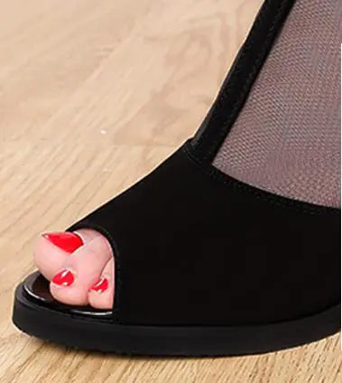 With a chic mid-heel height, these sandals provide the perfect lift while maintaining stability. The unique peep-toe design allows your feet to breathe, making them ideal for both warm days and nights out. Choose from a vibrant red or classic black to match any outfit in your wardrobe.