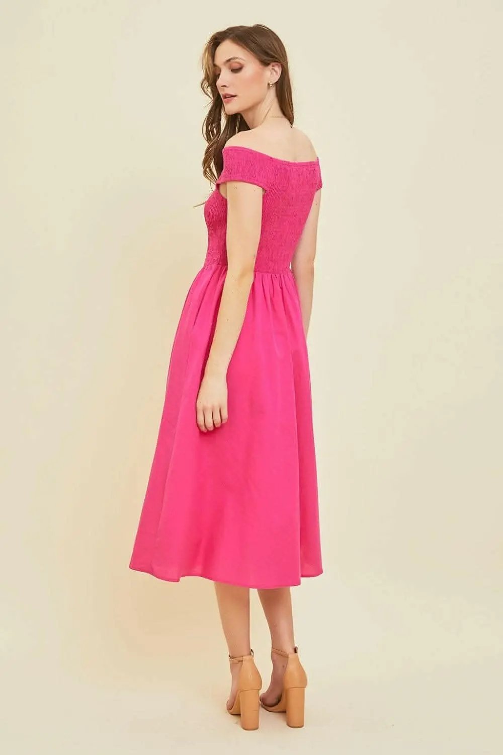 Trendsi HEYSON Off-Shoulder Smocked Midi Dress ‐ Fuchsia / S