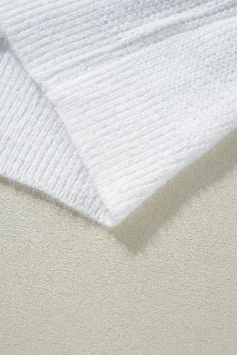 White Pearl Beaded Heart Pattern Fuzzy V-Neck Sweater