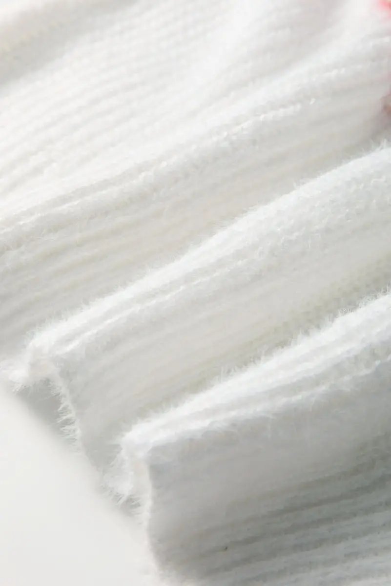 Love Salve White Pearl Heart Sweater Women's Valentine's Day Fuzzy V-Neck Knit Top ‐ White / S / 55%Acrylic+45%Polyamide