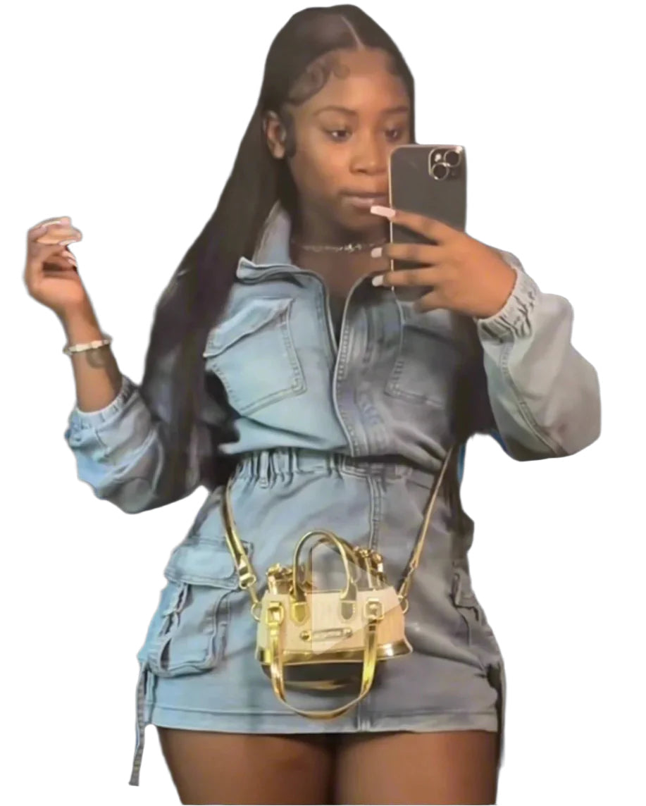 Introducing our Long Sleeve Denim Romper Skirt, the ultimate blend of comfort and style for your everyday wardrobe. This piece effortlessly combines the laid-back appeal of denim with the practicality of a romper, making it a must-have for any fashion-forward individual.