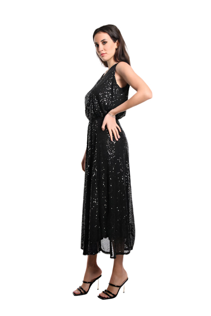 Tina Stephens Rae Sequin Long Flare Skirt SL501 ‐ 001 Black