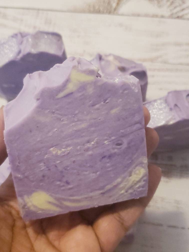 Made with, olive oil, shea, coconut oil, pomegranate and drenched with some Lavender Essential Oil.