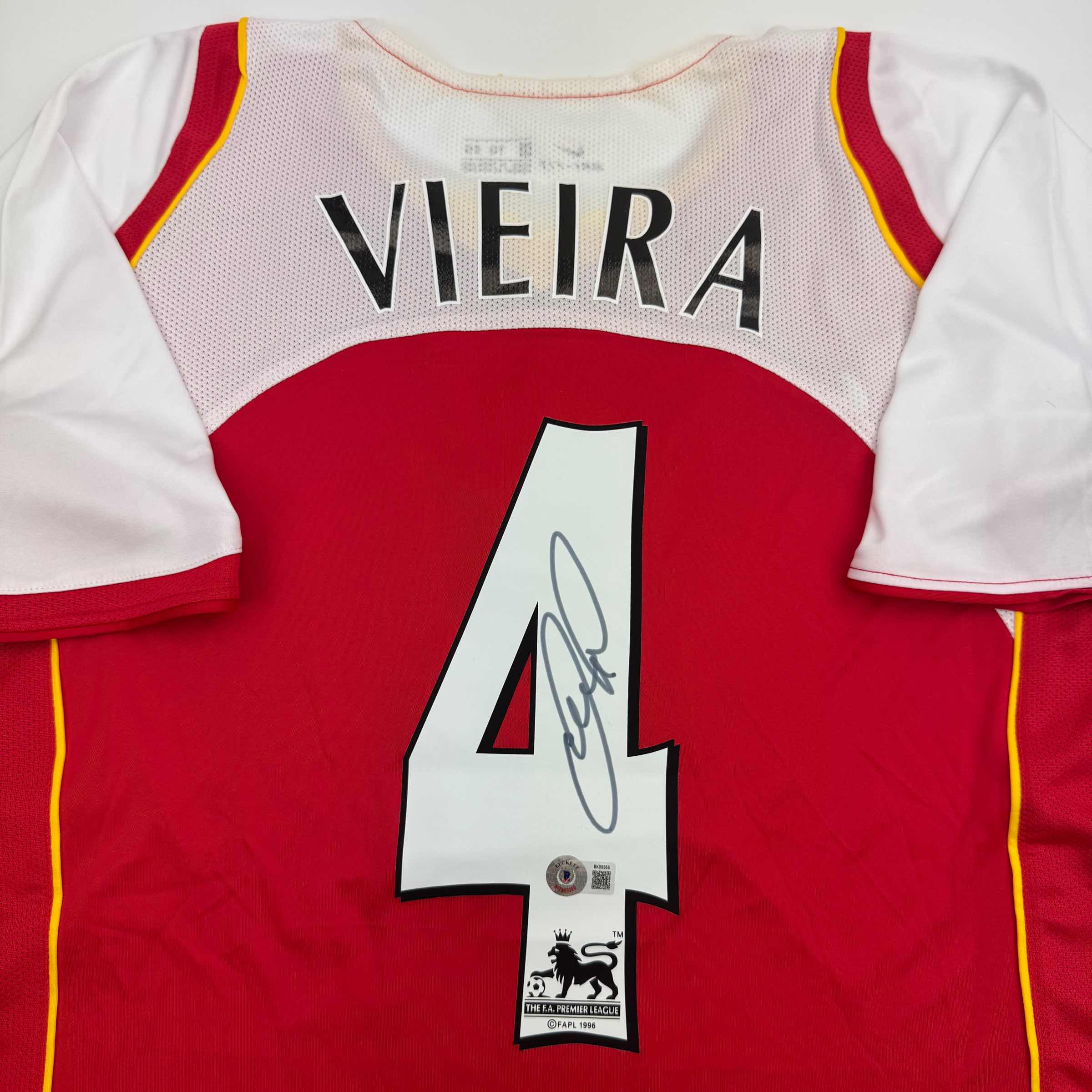 Autographed/Signed Patrick Vieira Arsenal Red Soccer Jersey Beckett BAS COA