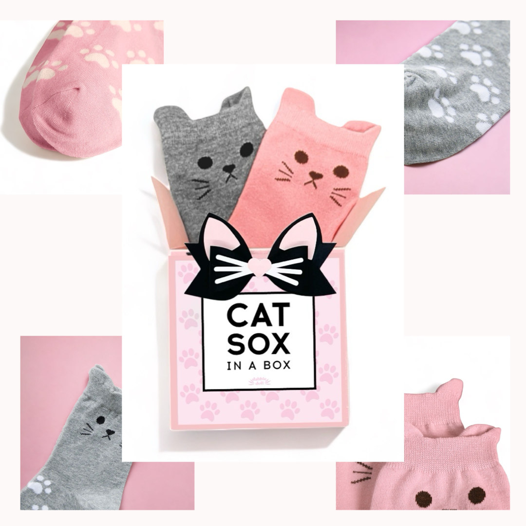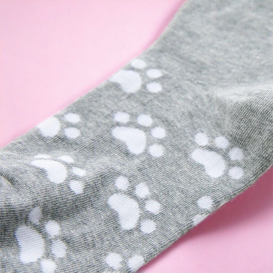 Cat Cartoon Crew Socks with Paw Pattern. Includes adorable cat theme gift box, perfect for gifting!